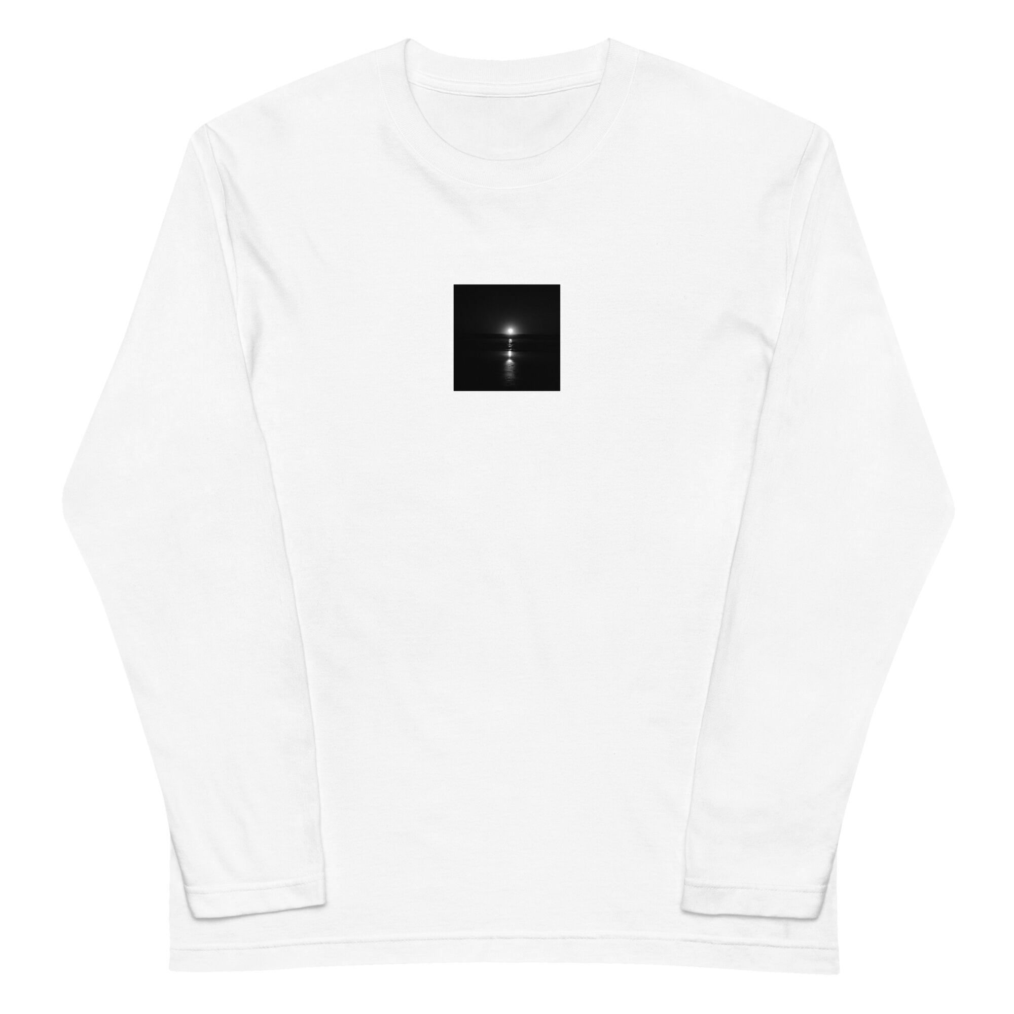 太陽 海 日差し モノクロ ユニセックス長袖Tシャツ
