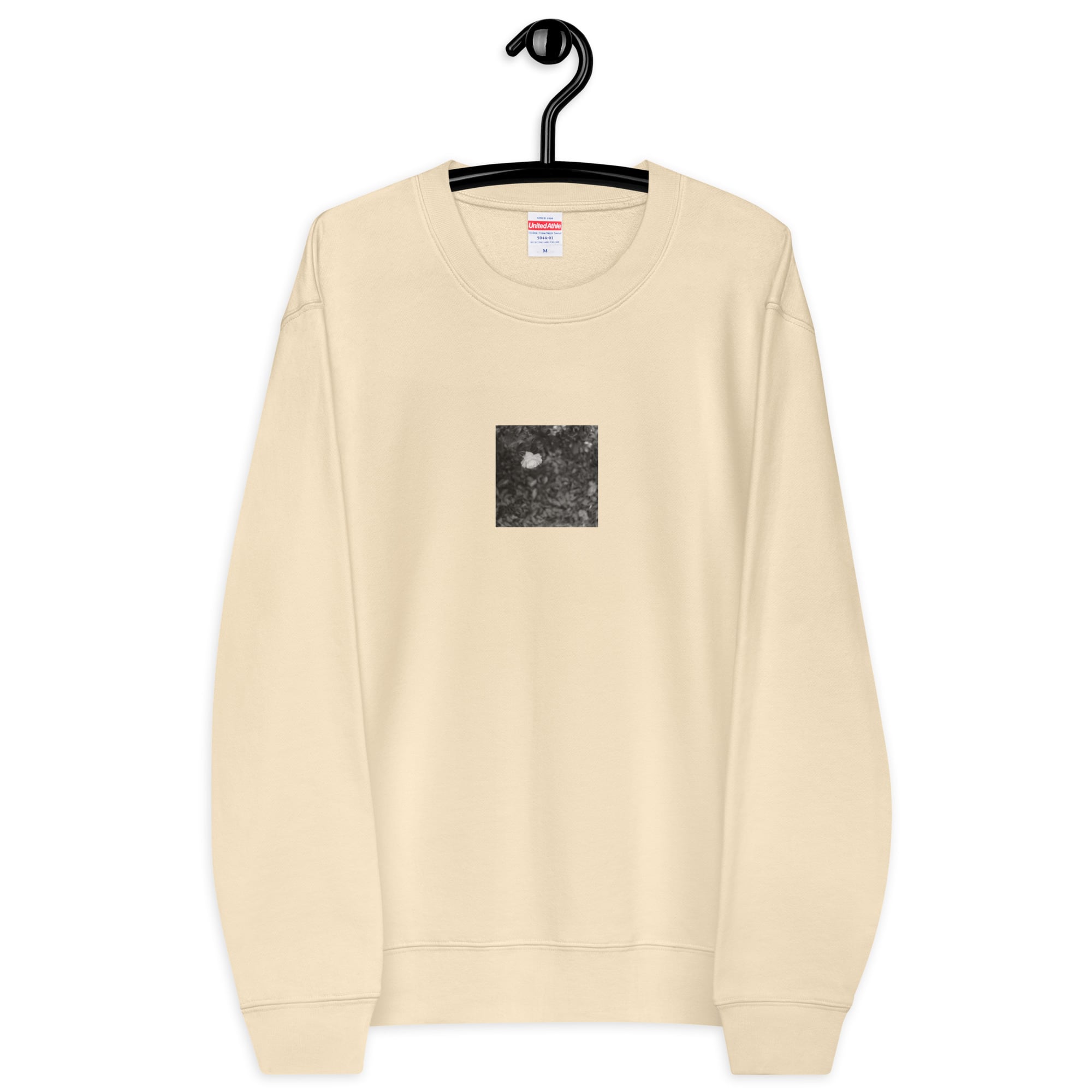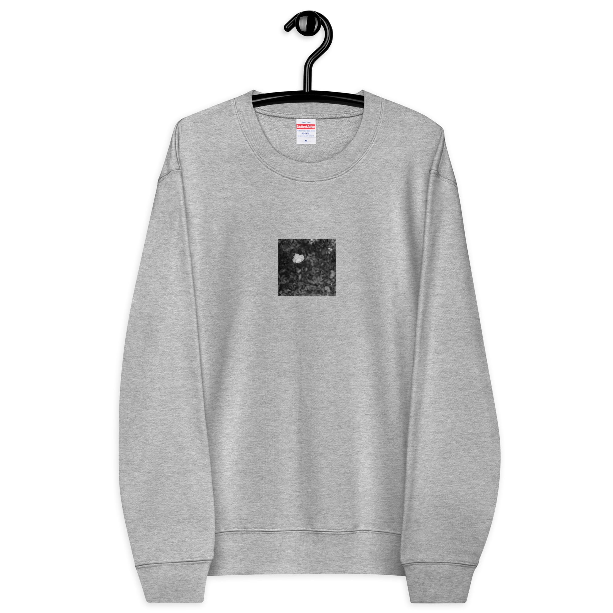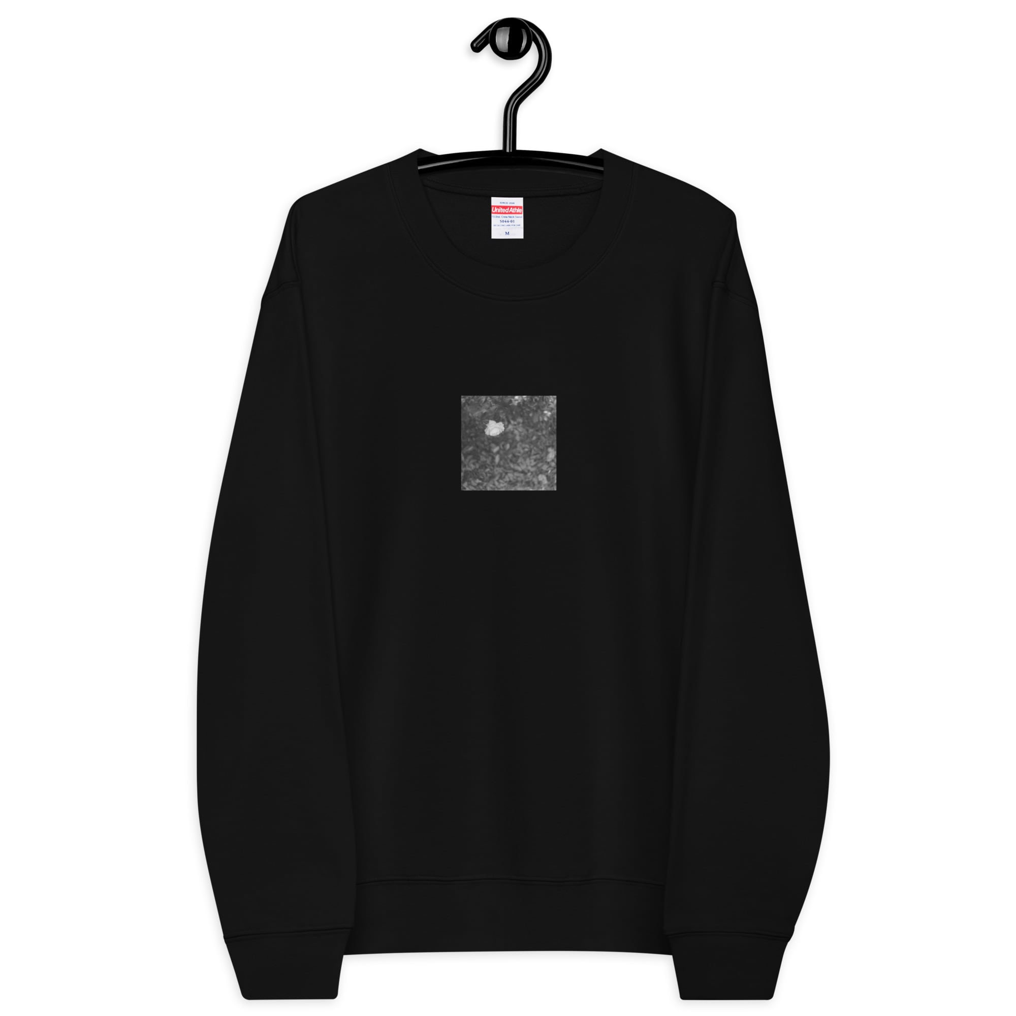 花 モノクロ ユニセックス クルーネック 裏毛スウェット