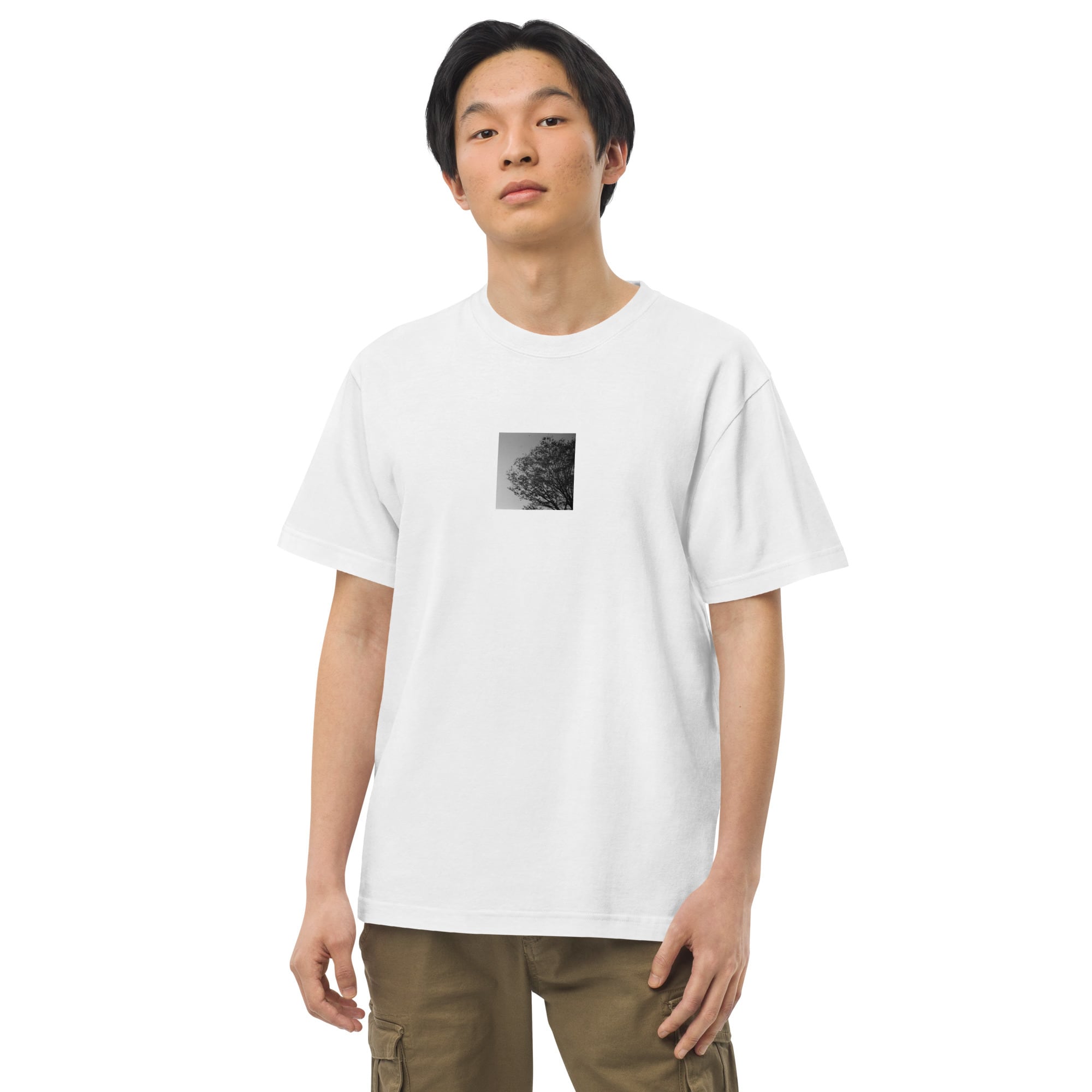 木 風 モノクロ ハイクオリティーTシャツ