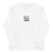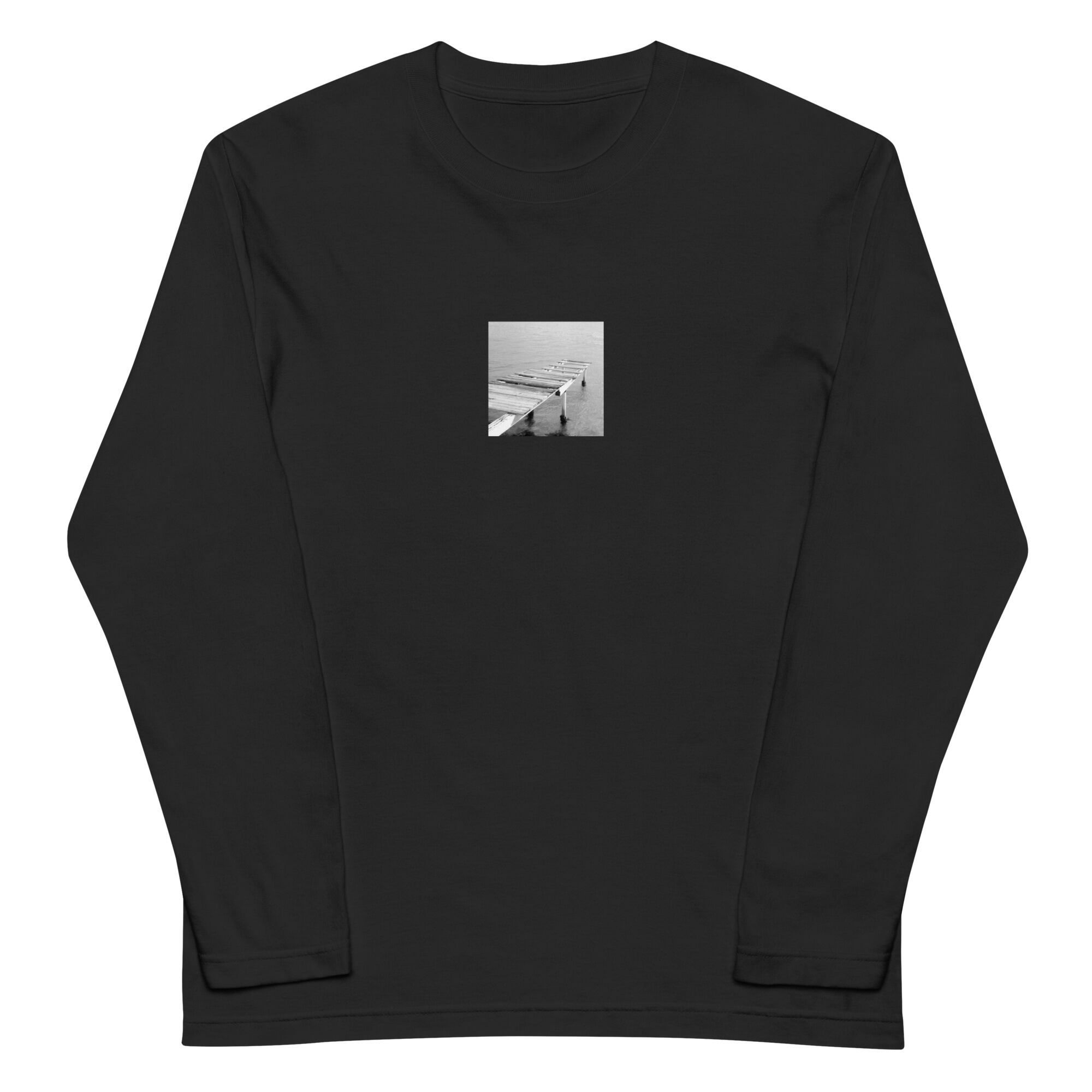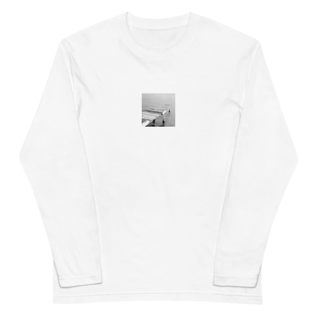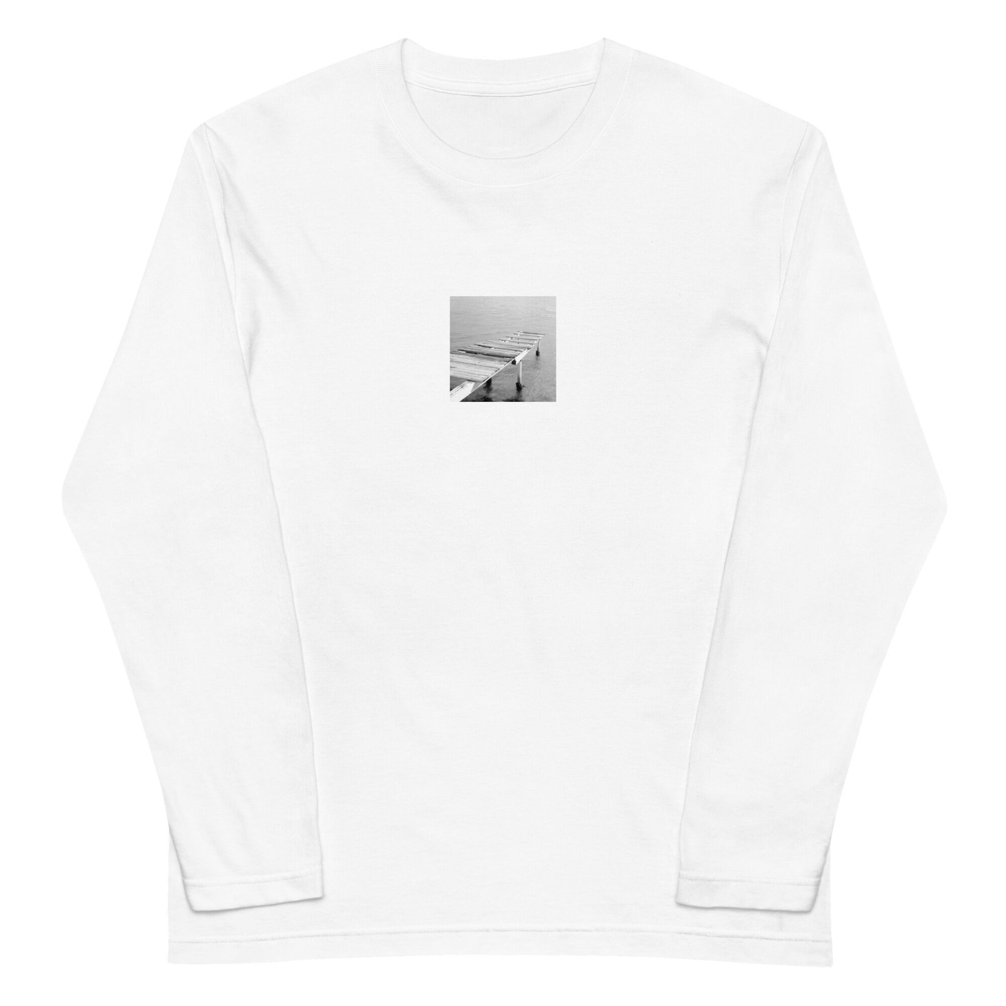 桟橋 海 モノクロ 風景 ユニセックス長袖Tシャツ