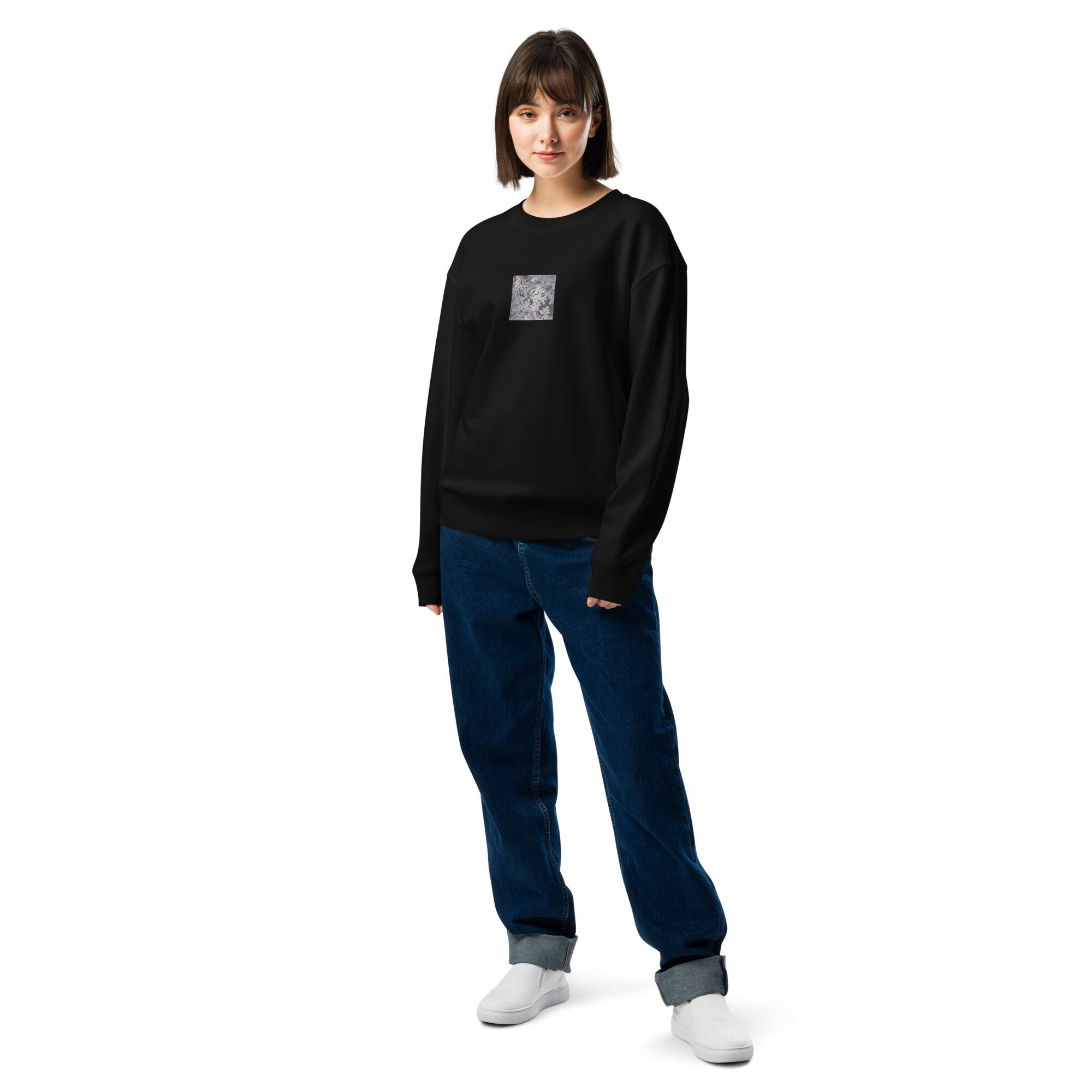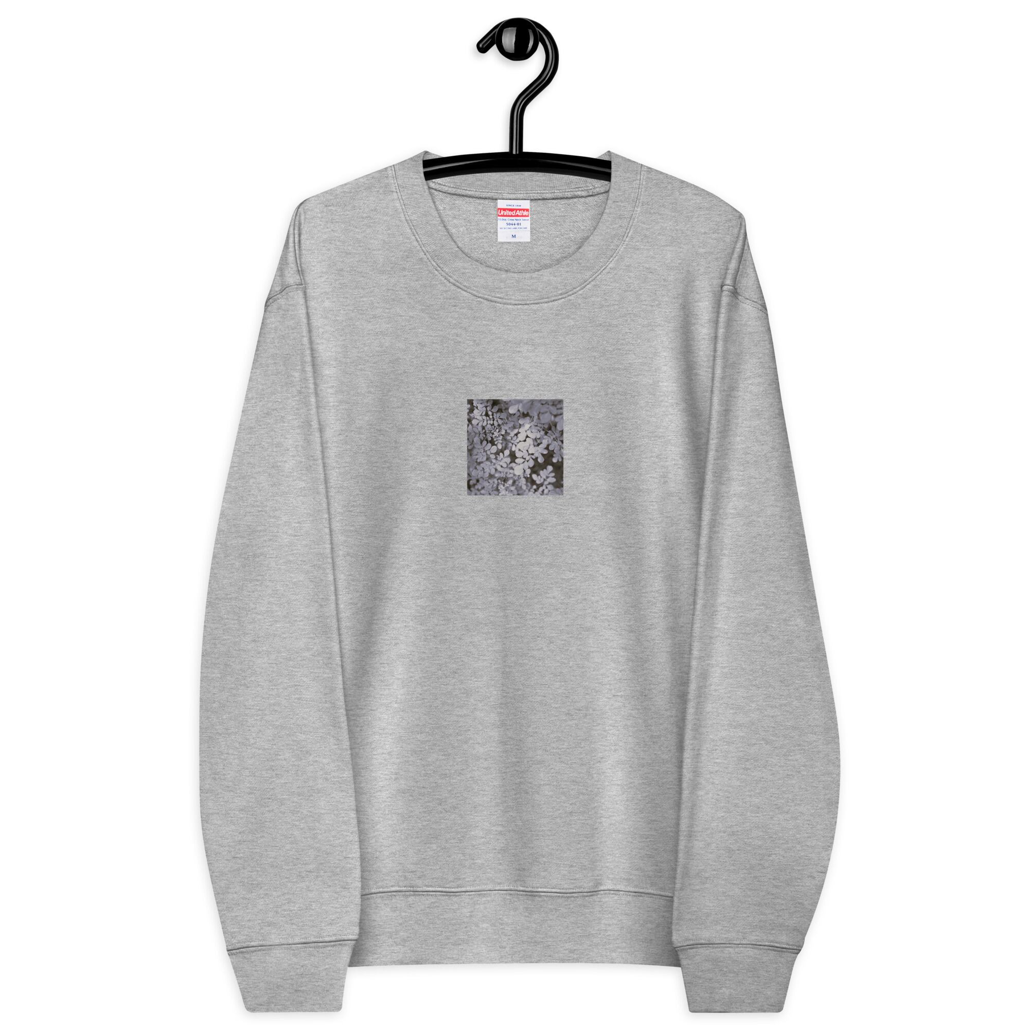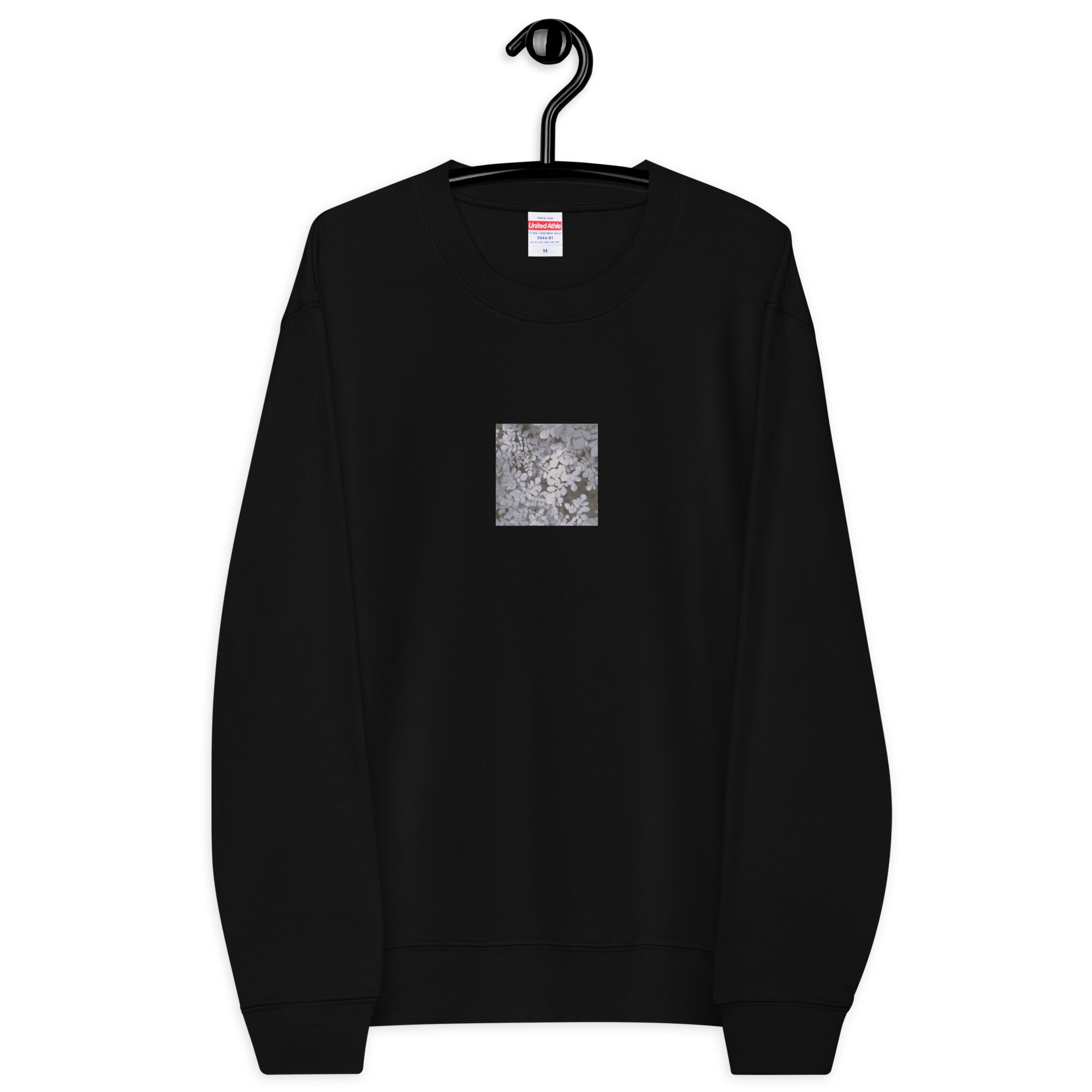葉 自然 モノクロ ユニセックス クルーネック 裏毛スウェット