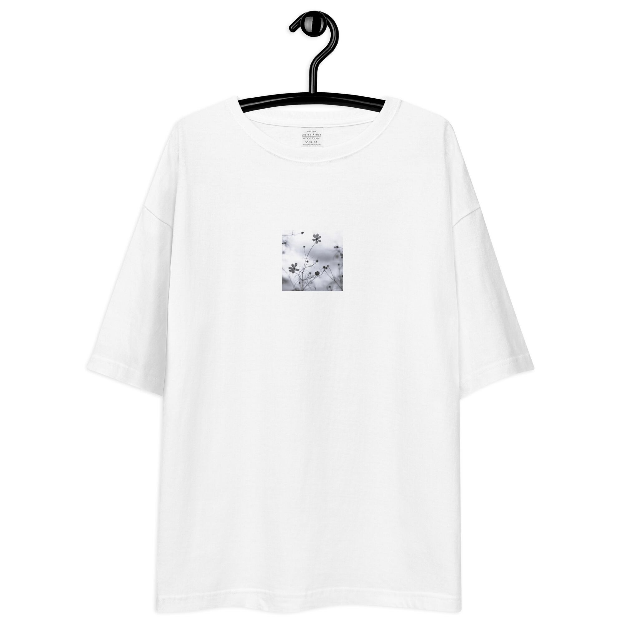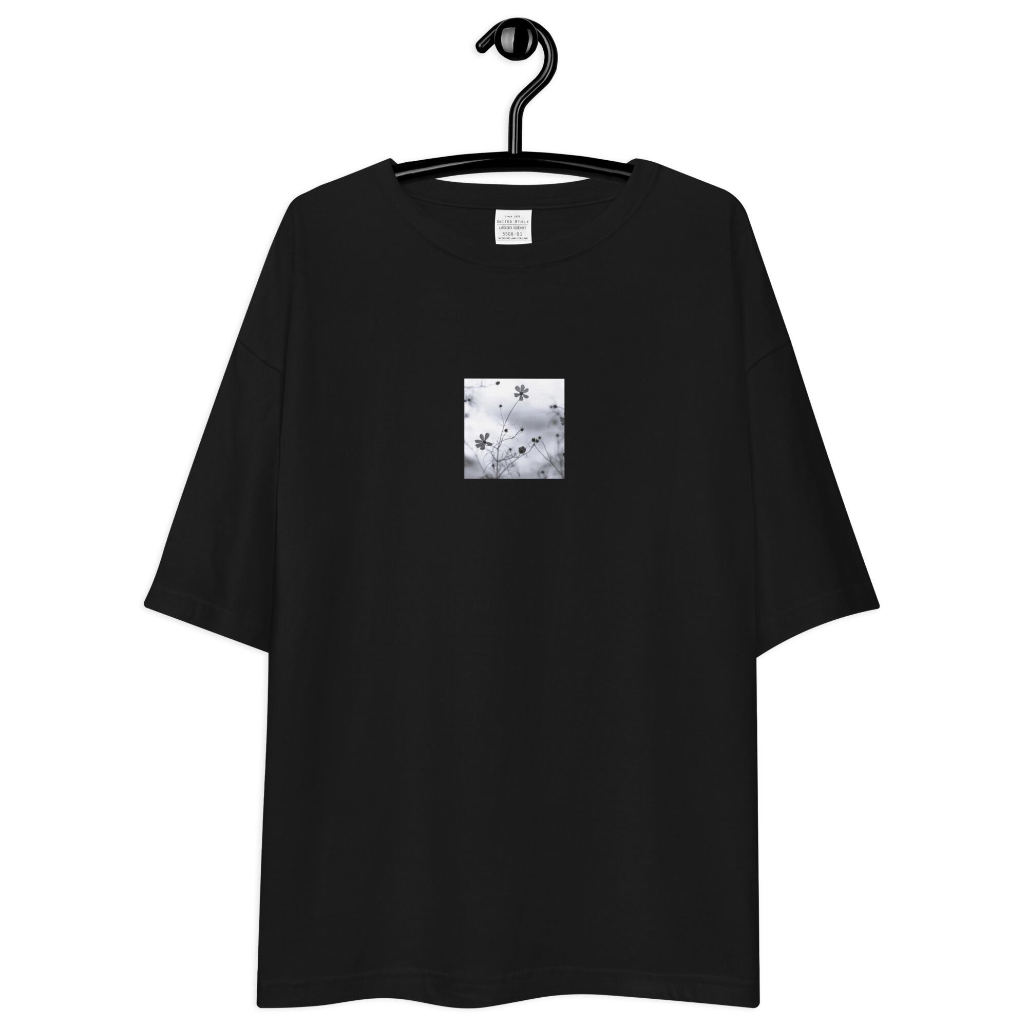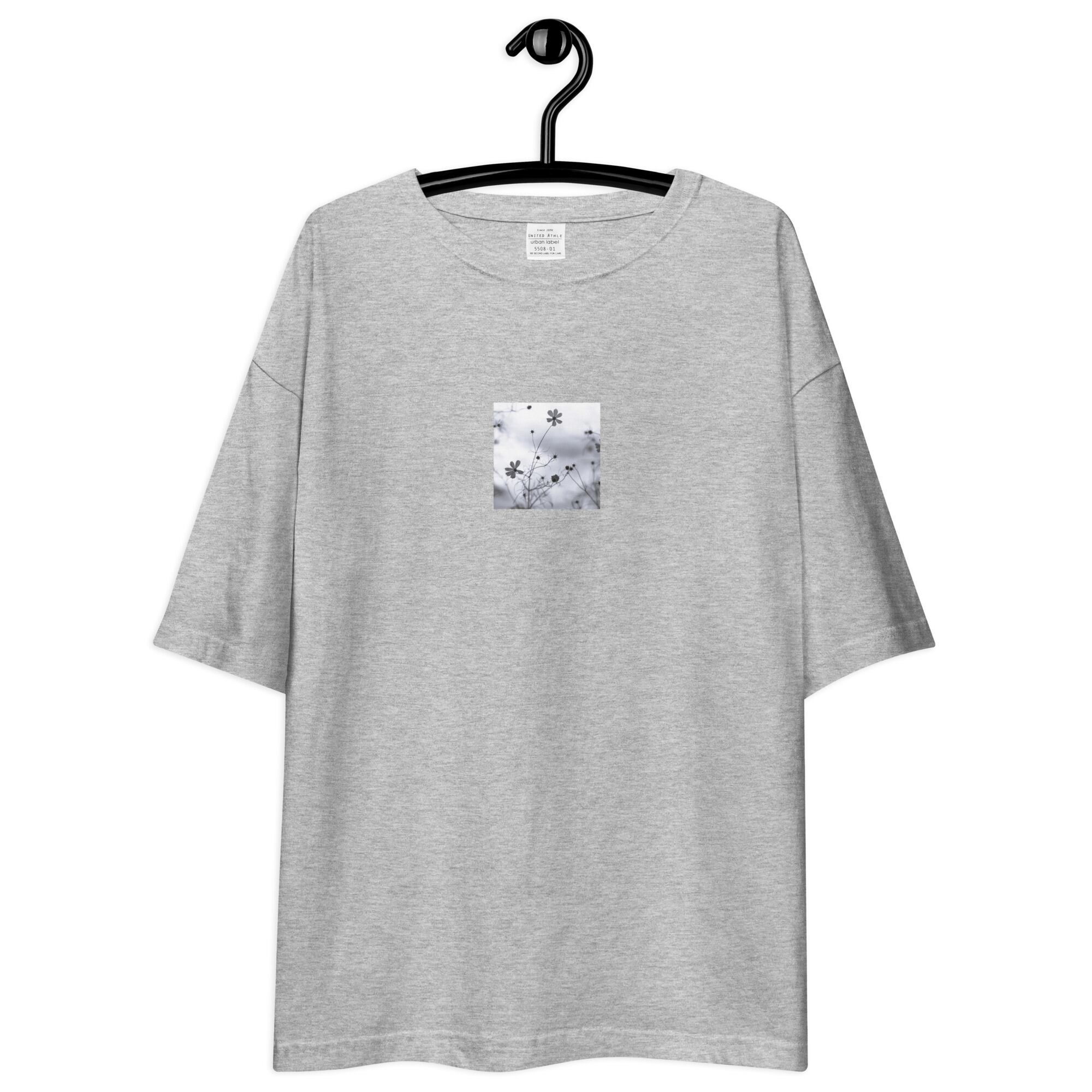 コスモス 秋桜 モノクロ ユニセックス ビッグシルエット Tシャツ