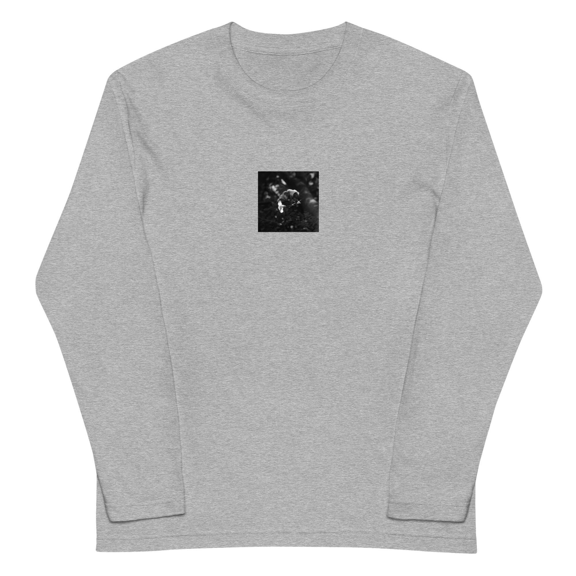 花 モノクロ ユニセックス長袖Tシャツ