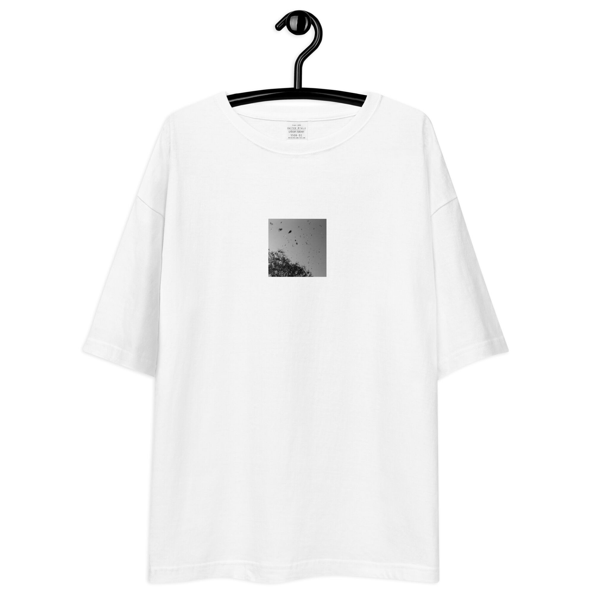 風で舞う落葉 モノクロ ユニセックス ビッグシルエット Tシャツ