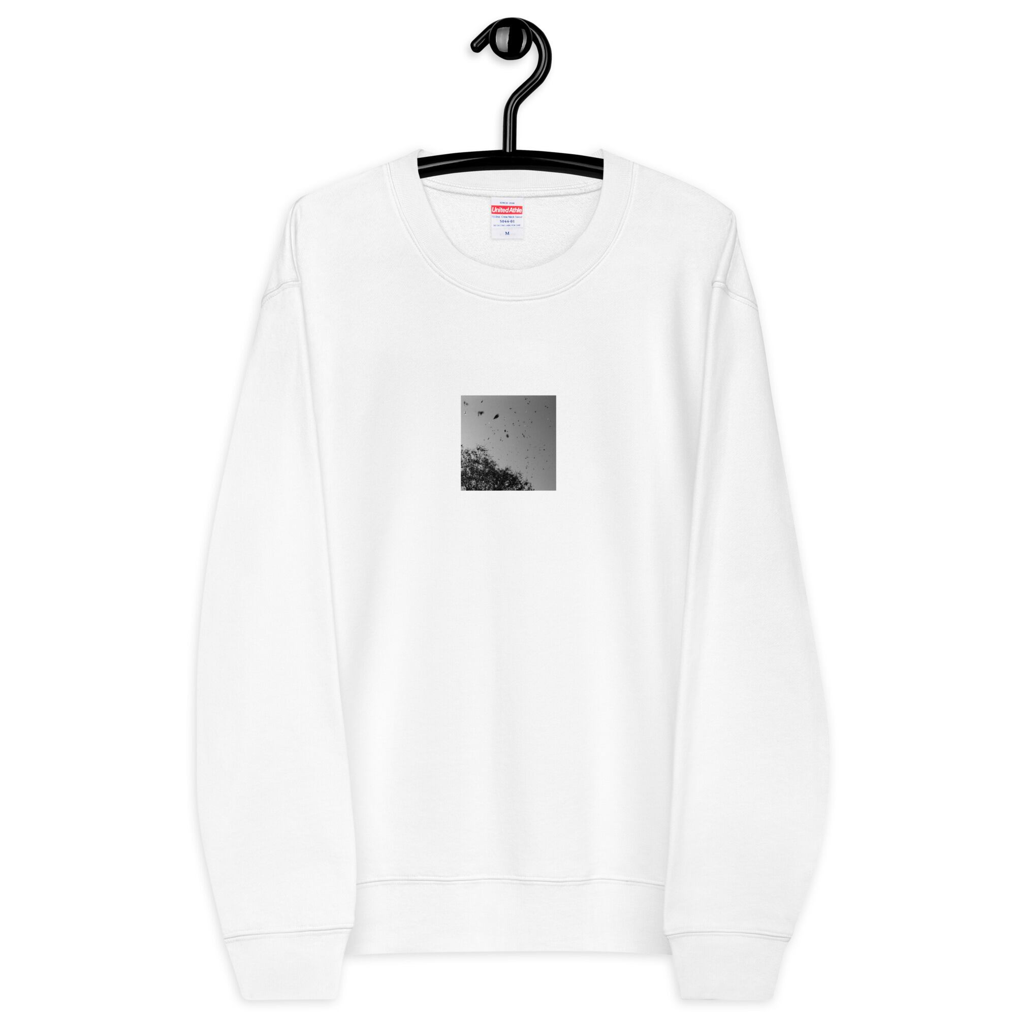 風で舞う落葉 モノクロ ユニセックス クルーネック 裏毛スウェット