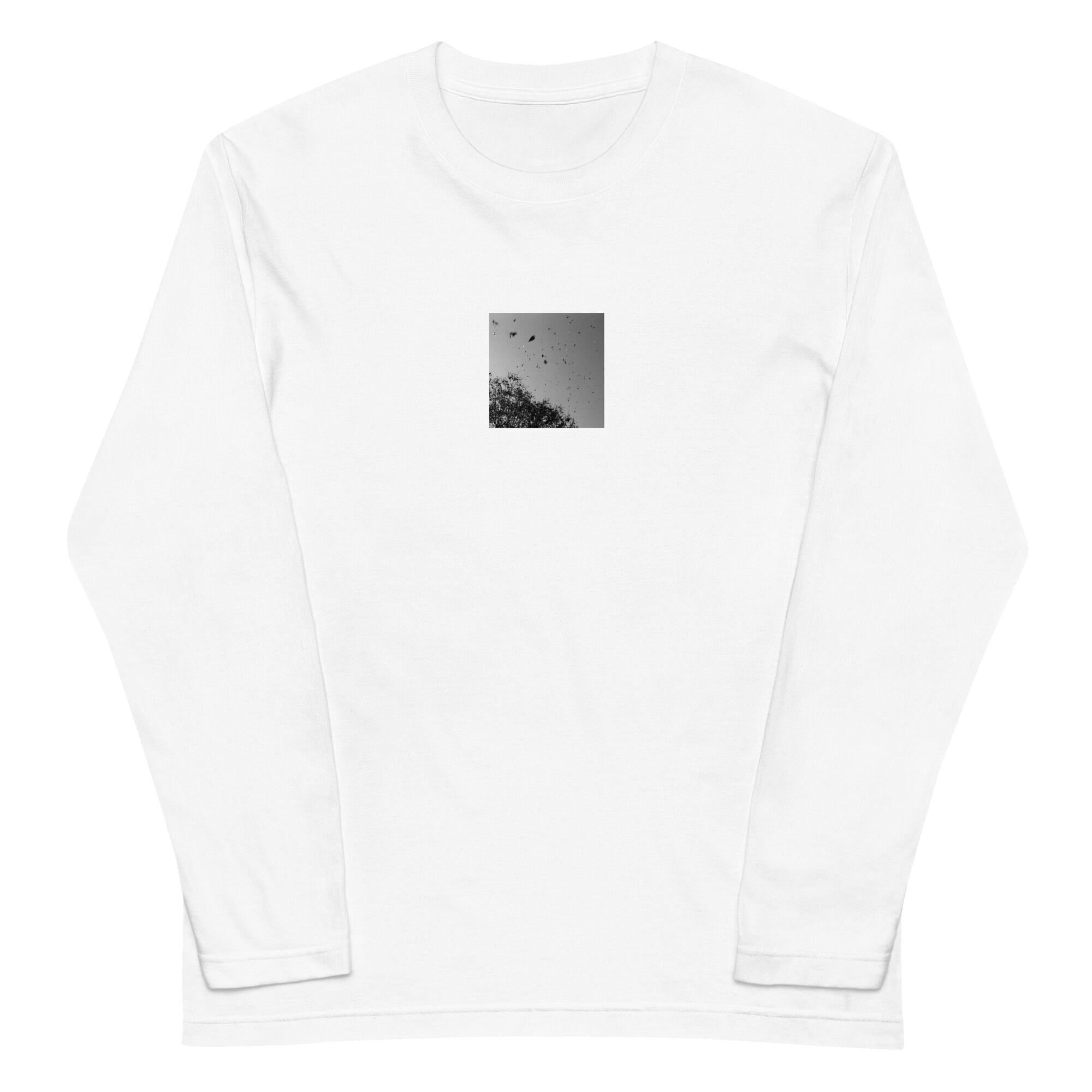 風で舞う落葉 モノクロ ユニセックス長袖Tシャツ