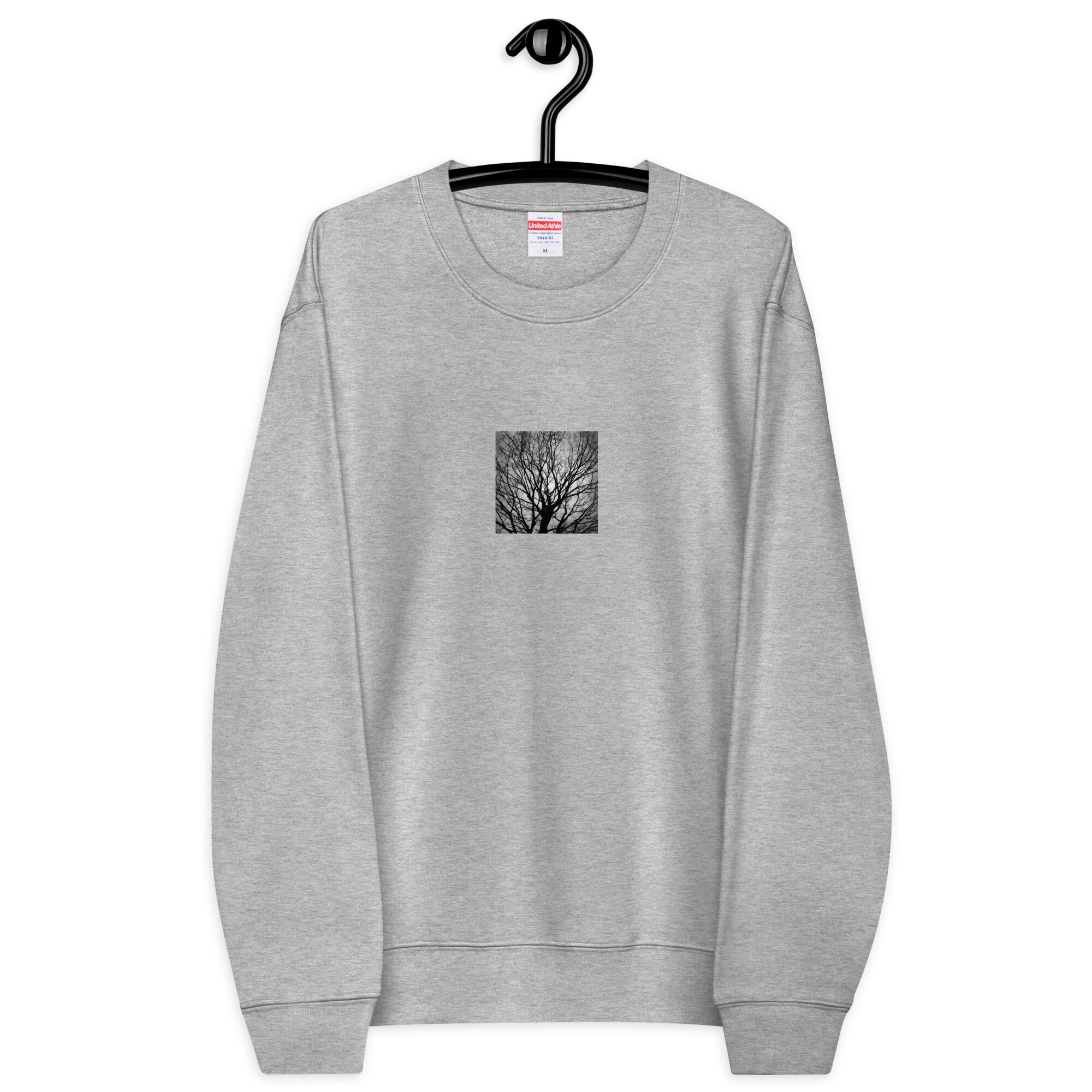木 模様 モノクロ ユニセックス クルーネック 裏毛スウェット
