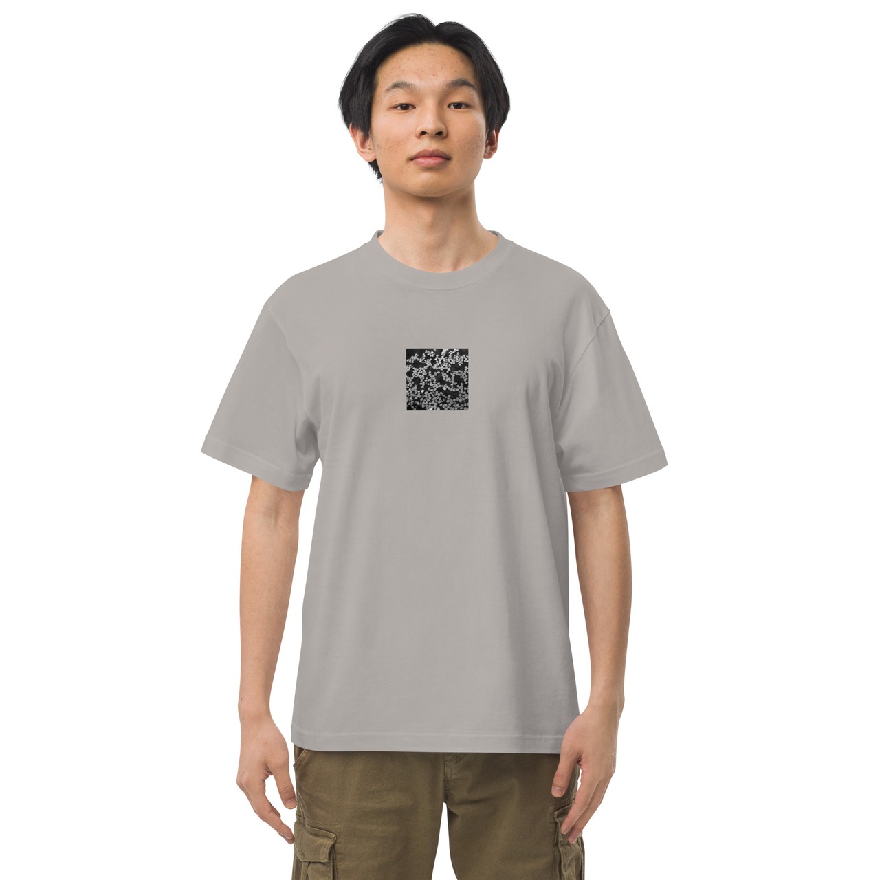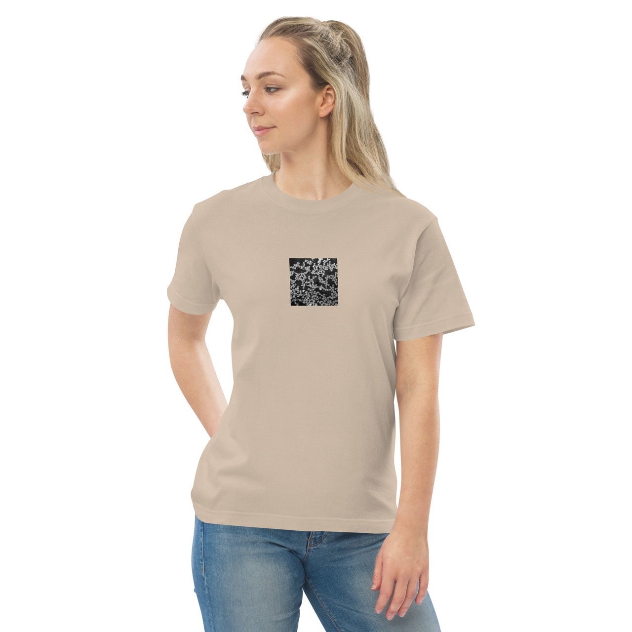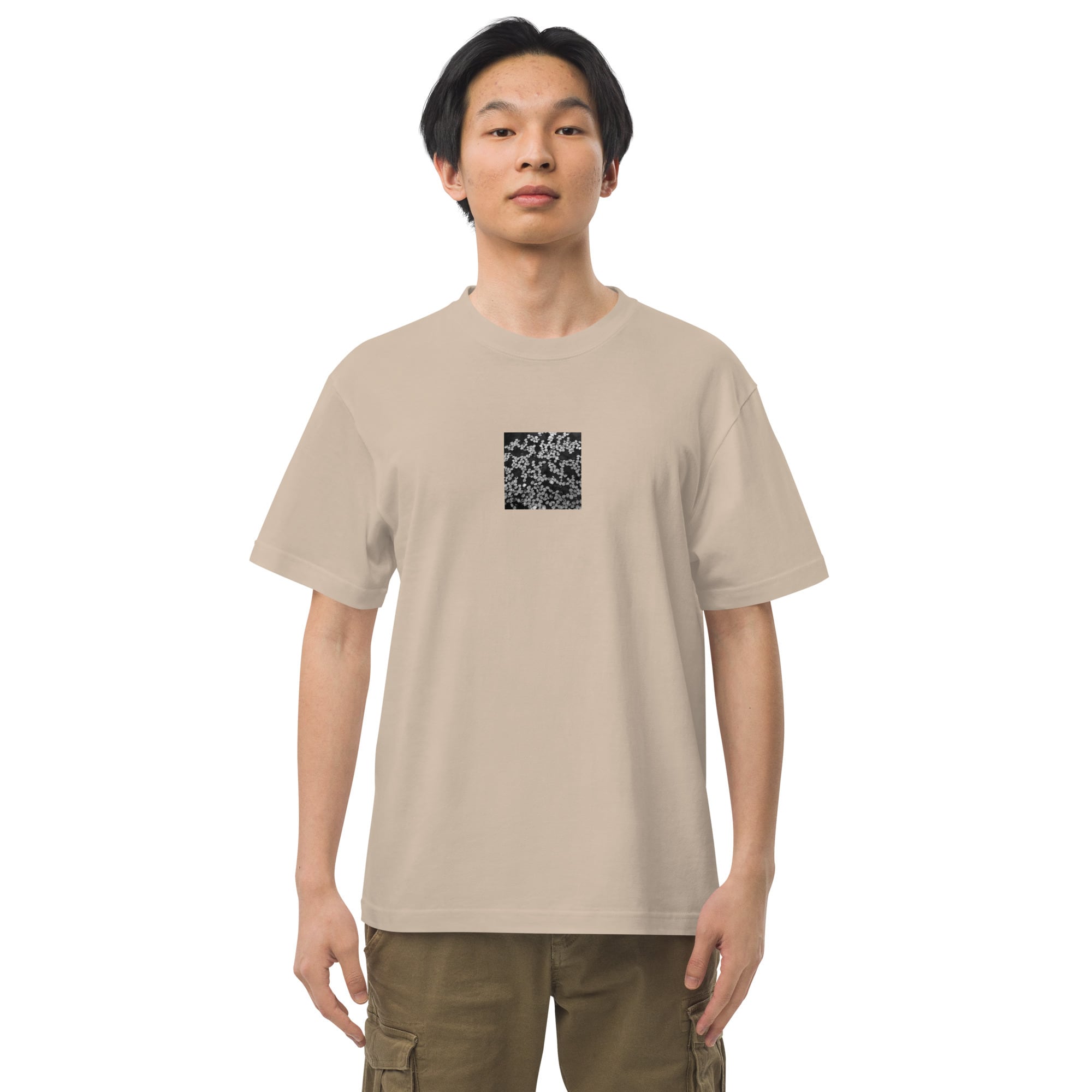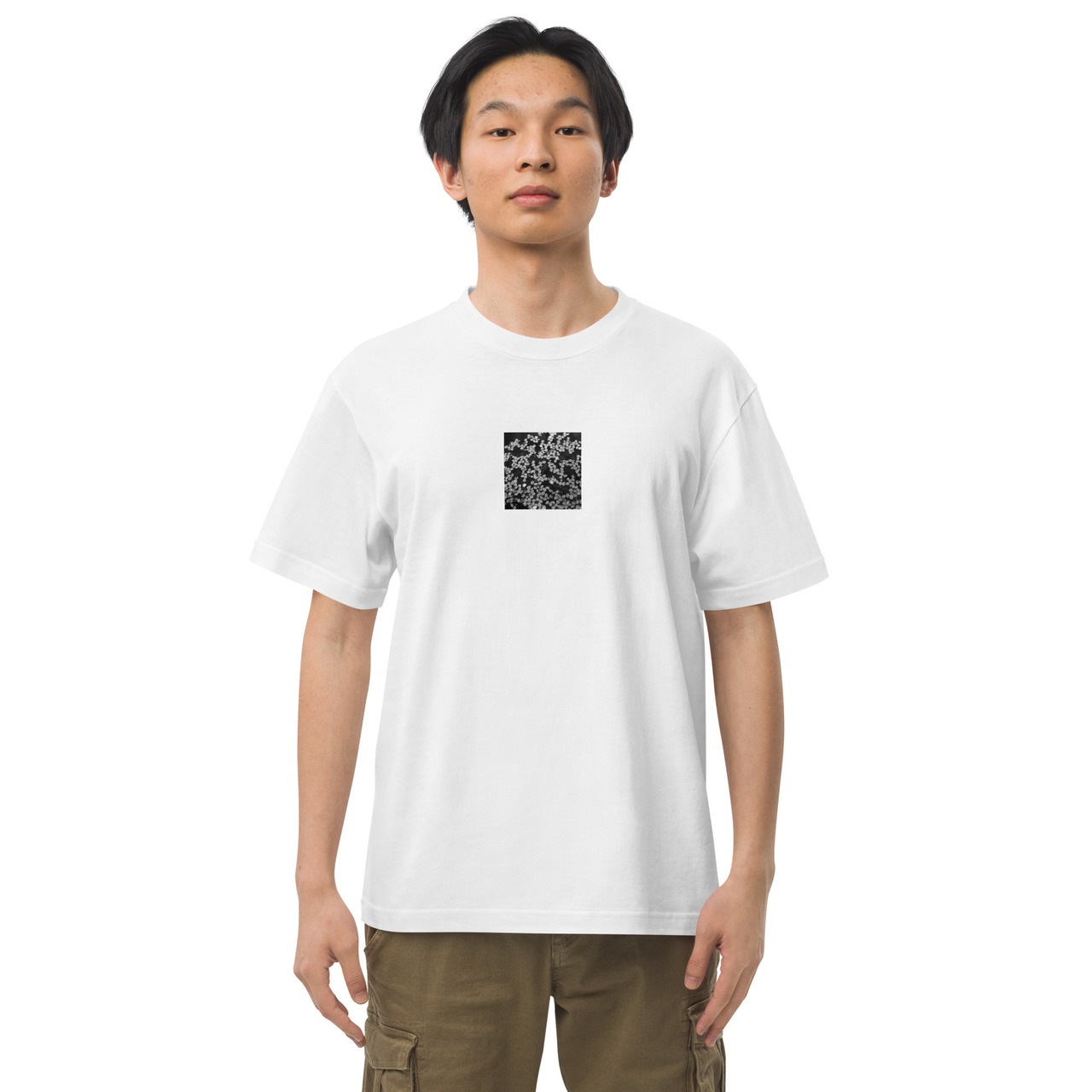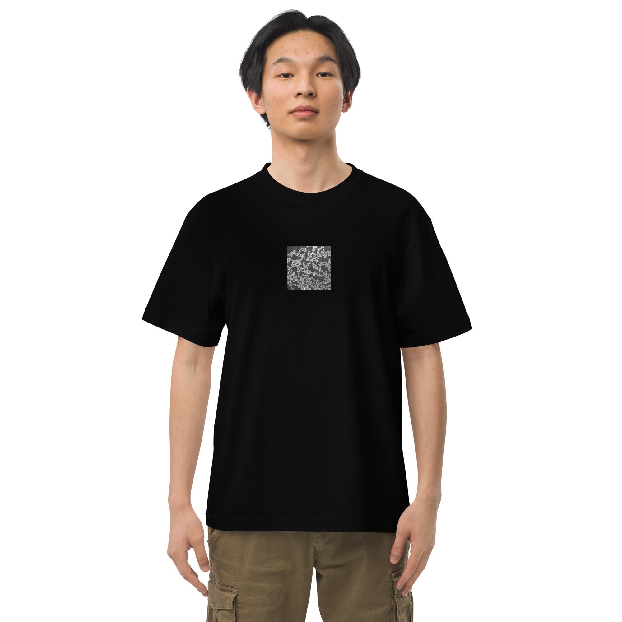 桜のはなびら 水たまり モノクロ ハイクオリティーTシャツ