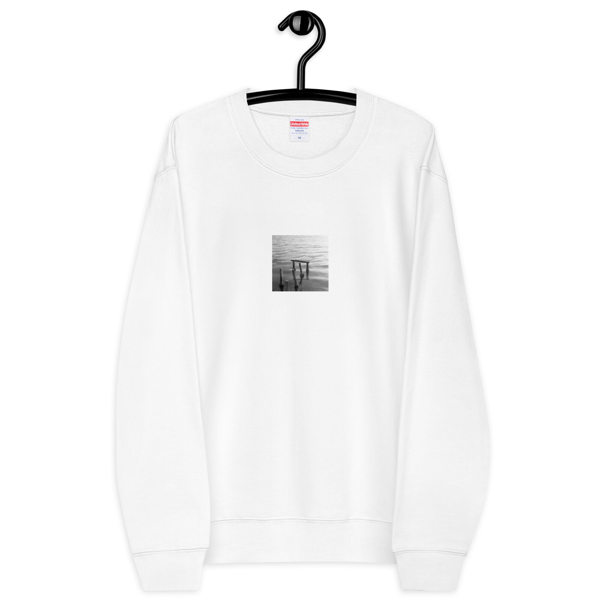 朽ちた桟橋 モノクロ ユニセックス クルーネック 裏毛スウェット