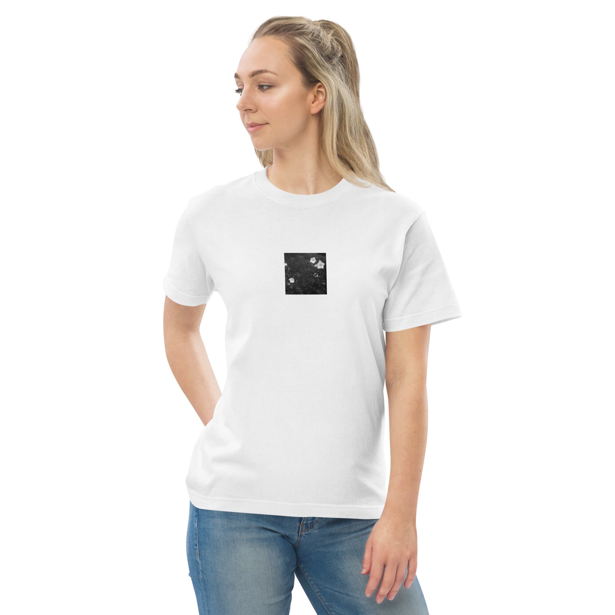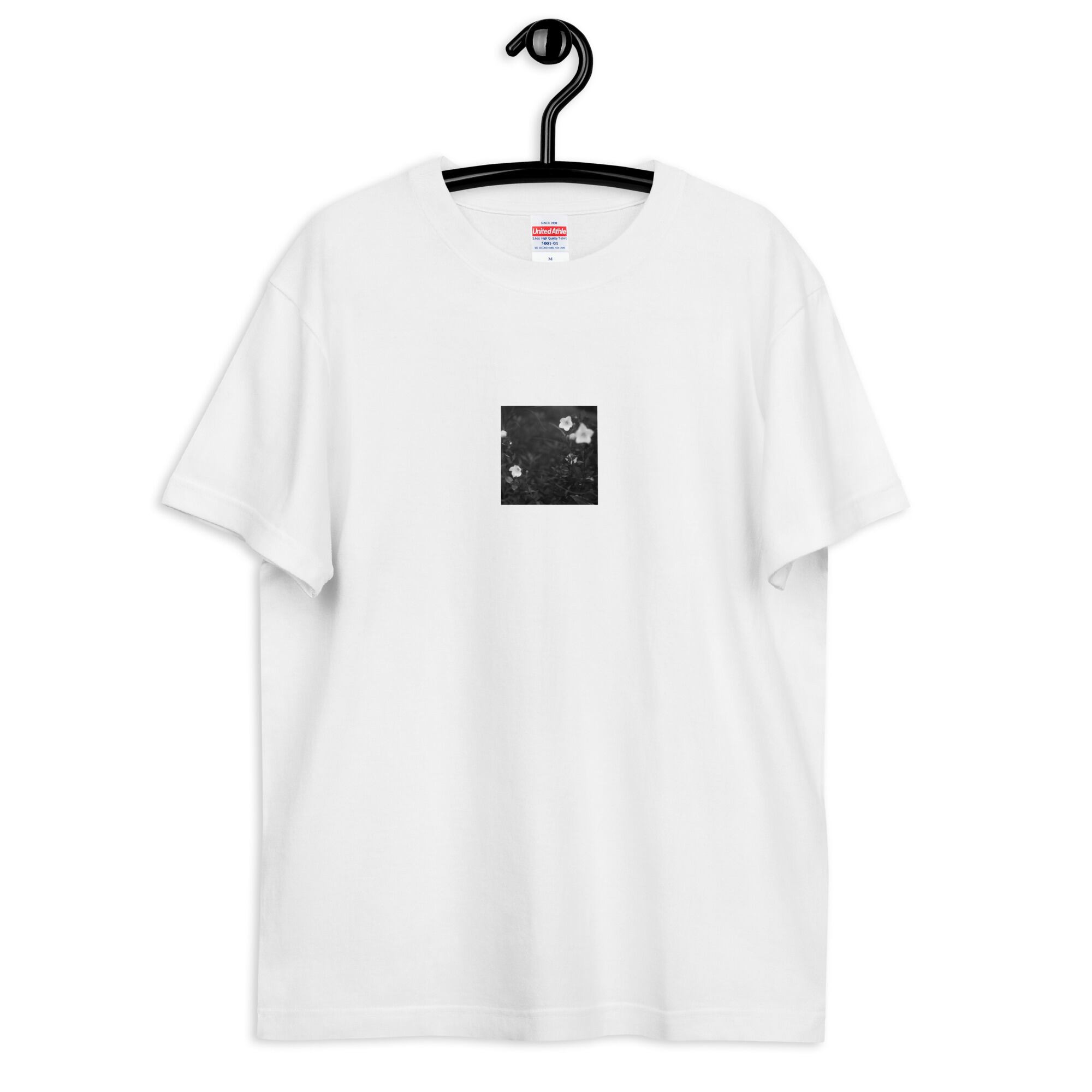 花 モノクロ ハイクオリティーTシャツ