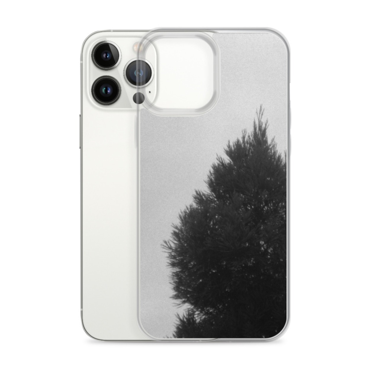 霧と木 モノクロ iPhoneケース