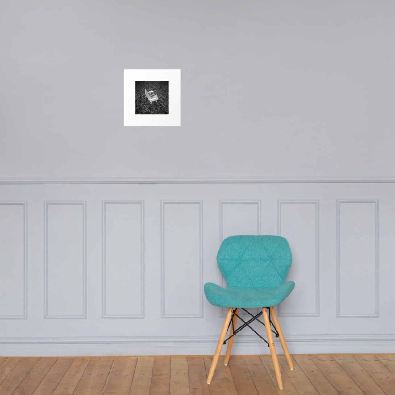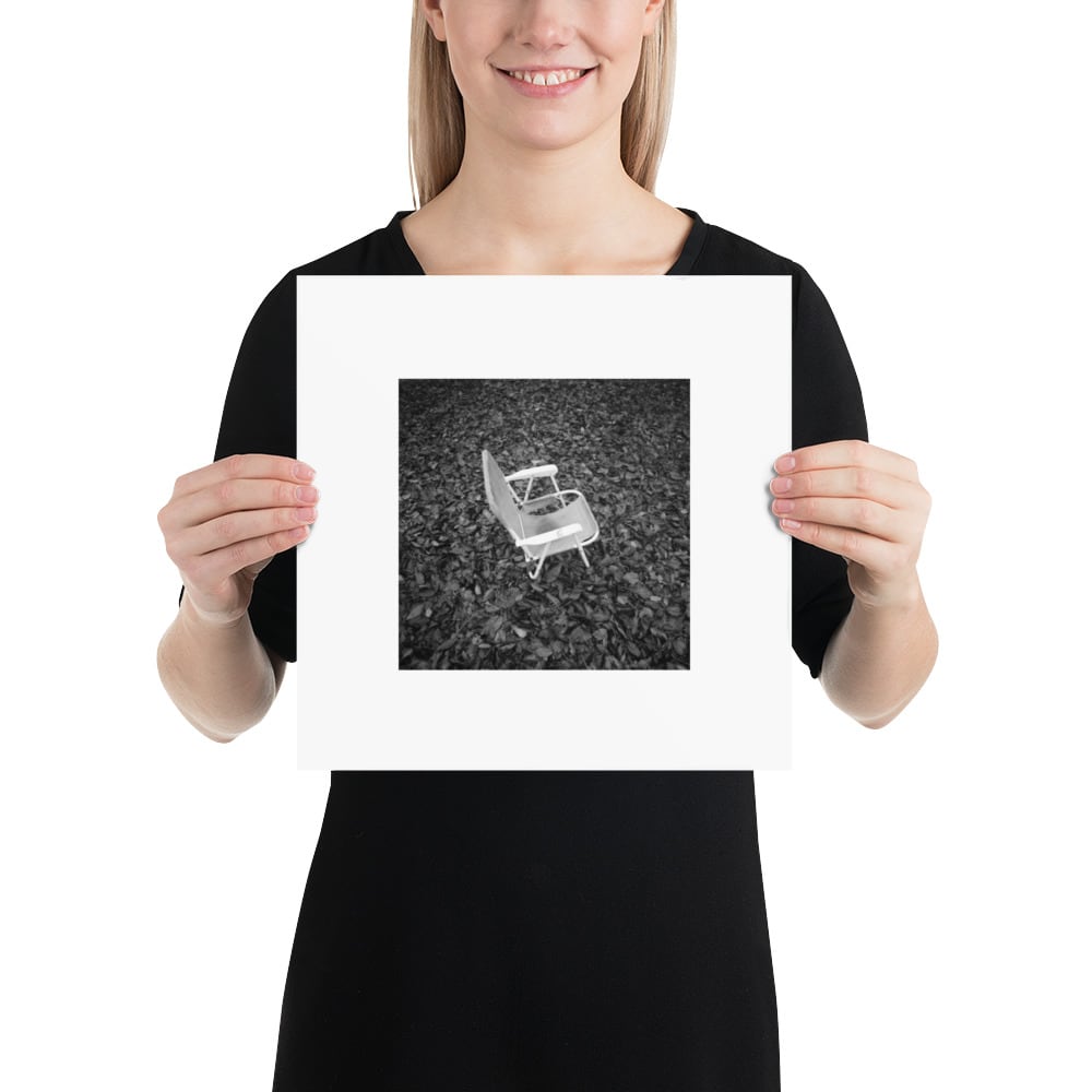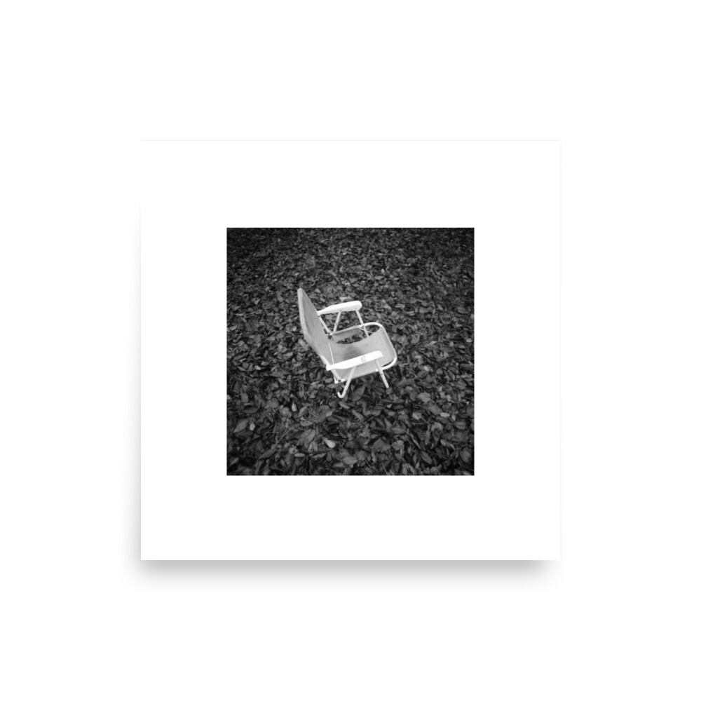 落葉と椅子 モノクロ フォトペーパーポスター