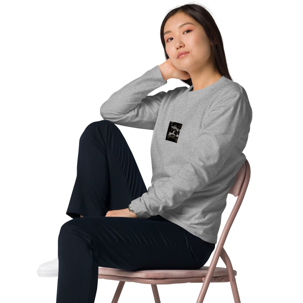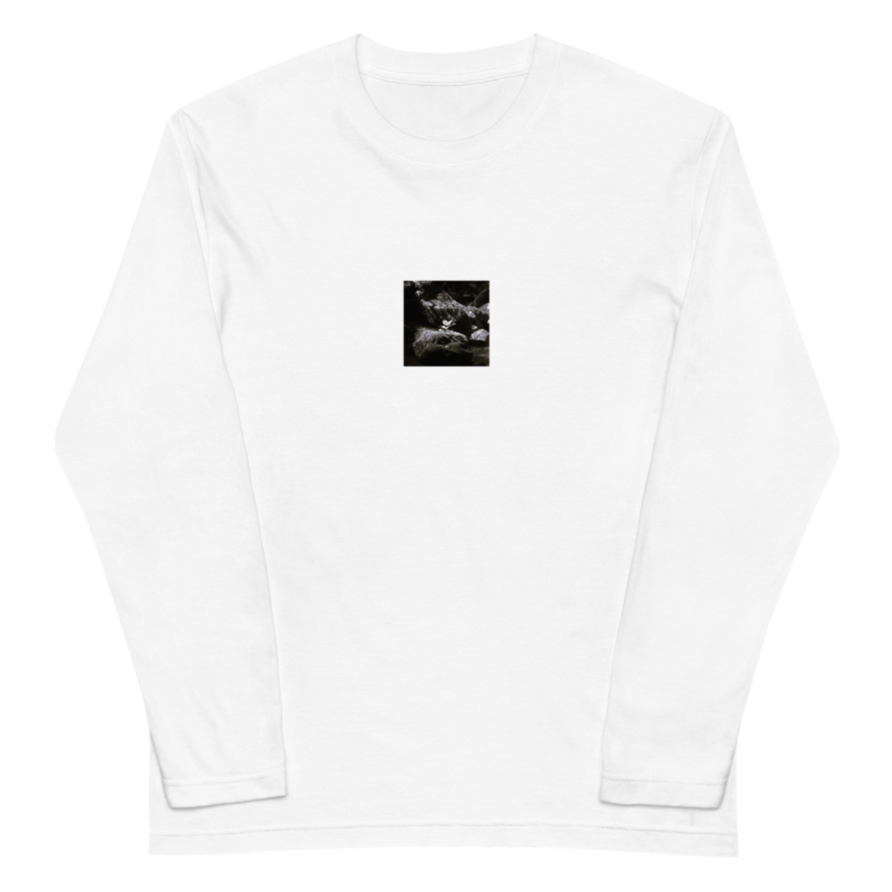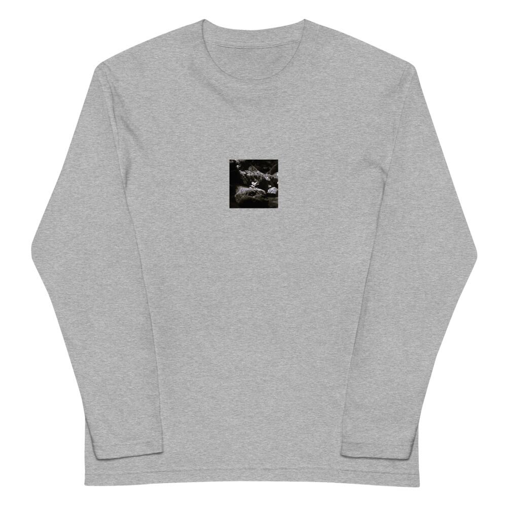 岩の上の植物 モノクロ ユニセックス長袖Tシャツ