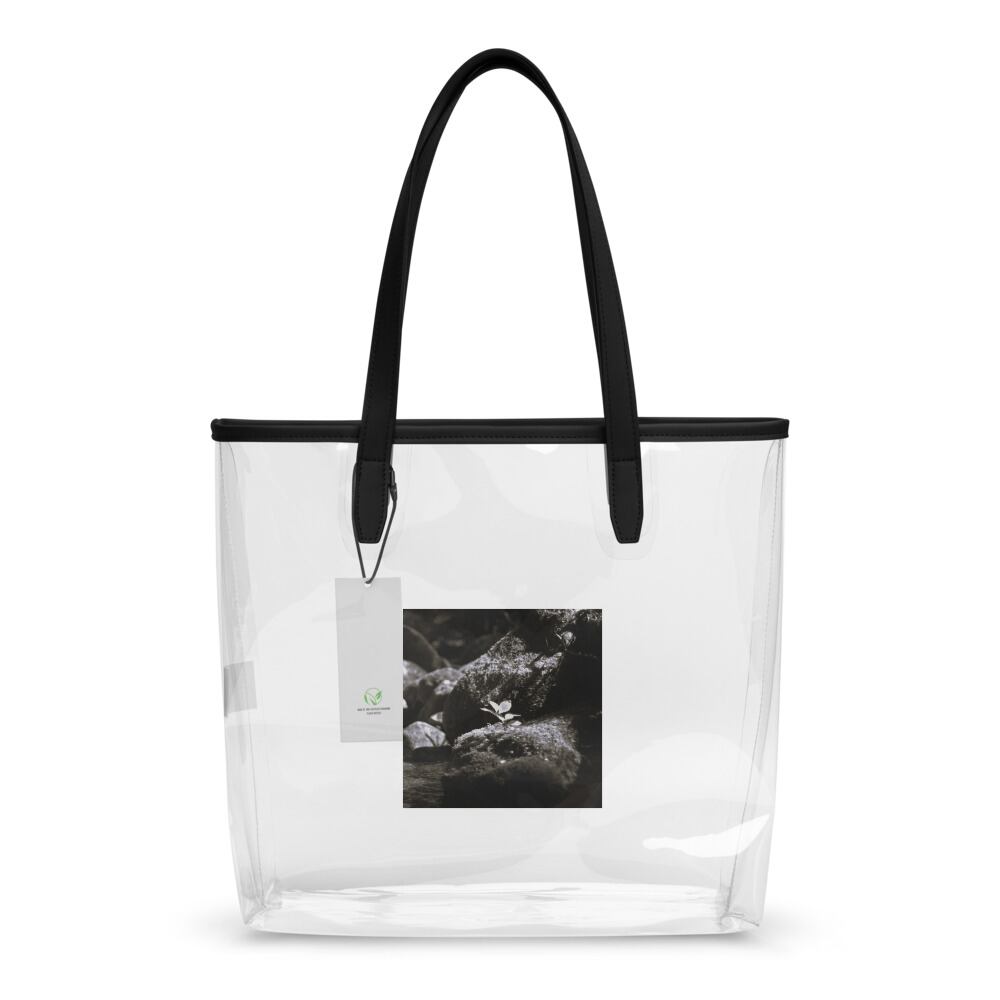 岩の上の植物 モノクロ クリアトートバッグ