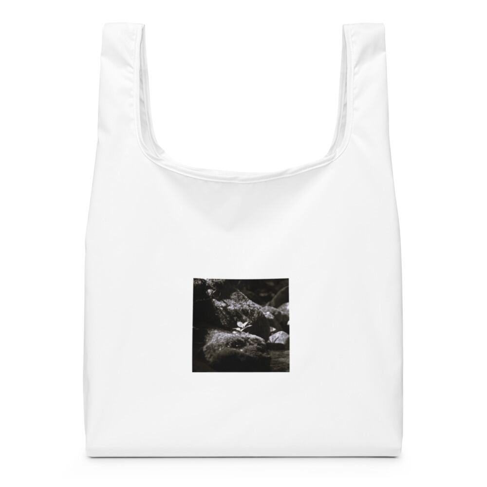 岩の上の植物 モノクロ ショッピングバッグ