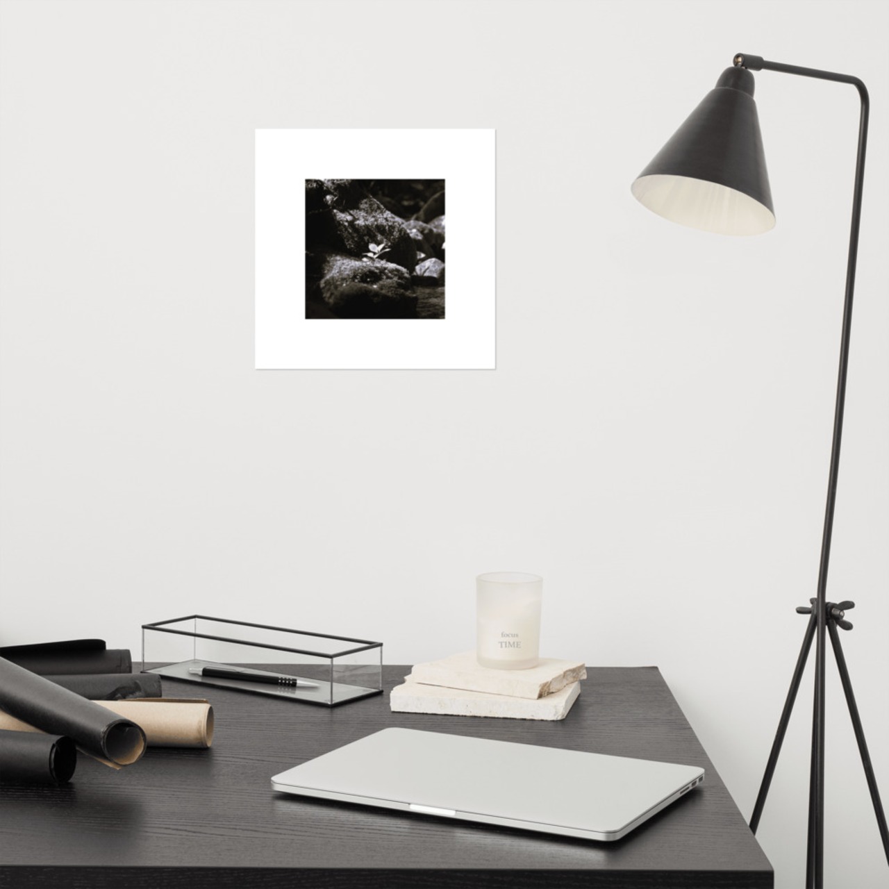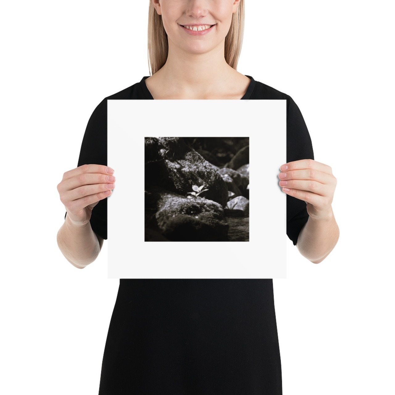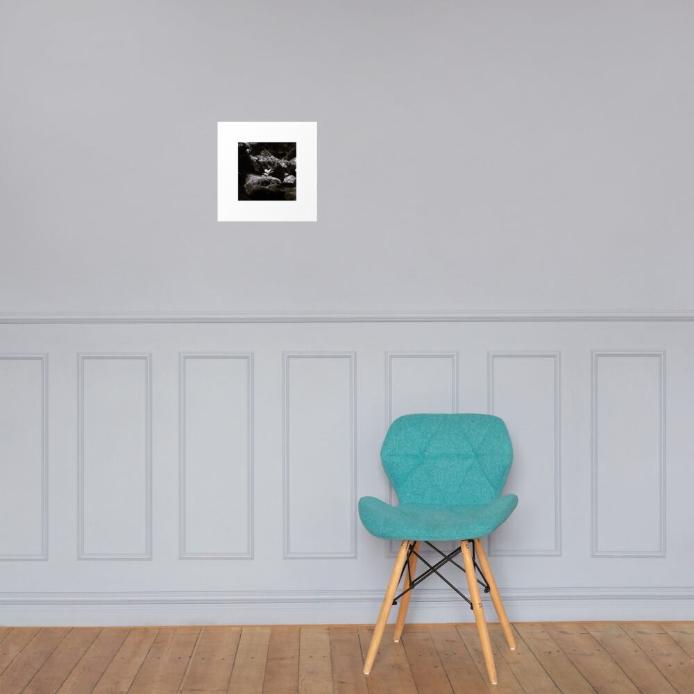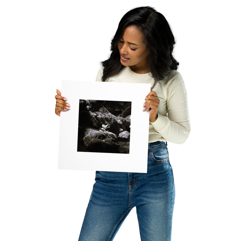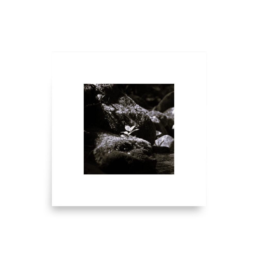 岩の上の植物 モノクロ フォトペーパーポスター