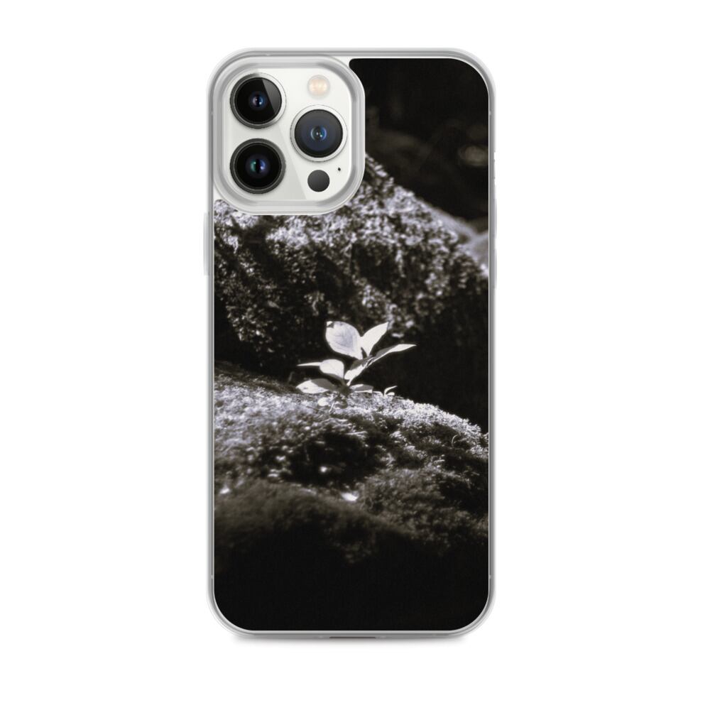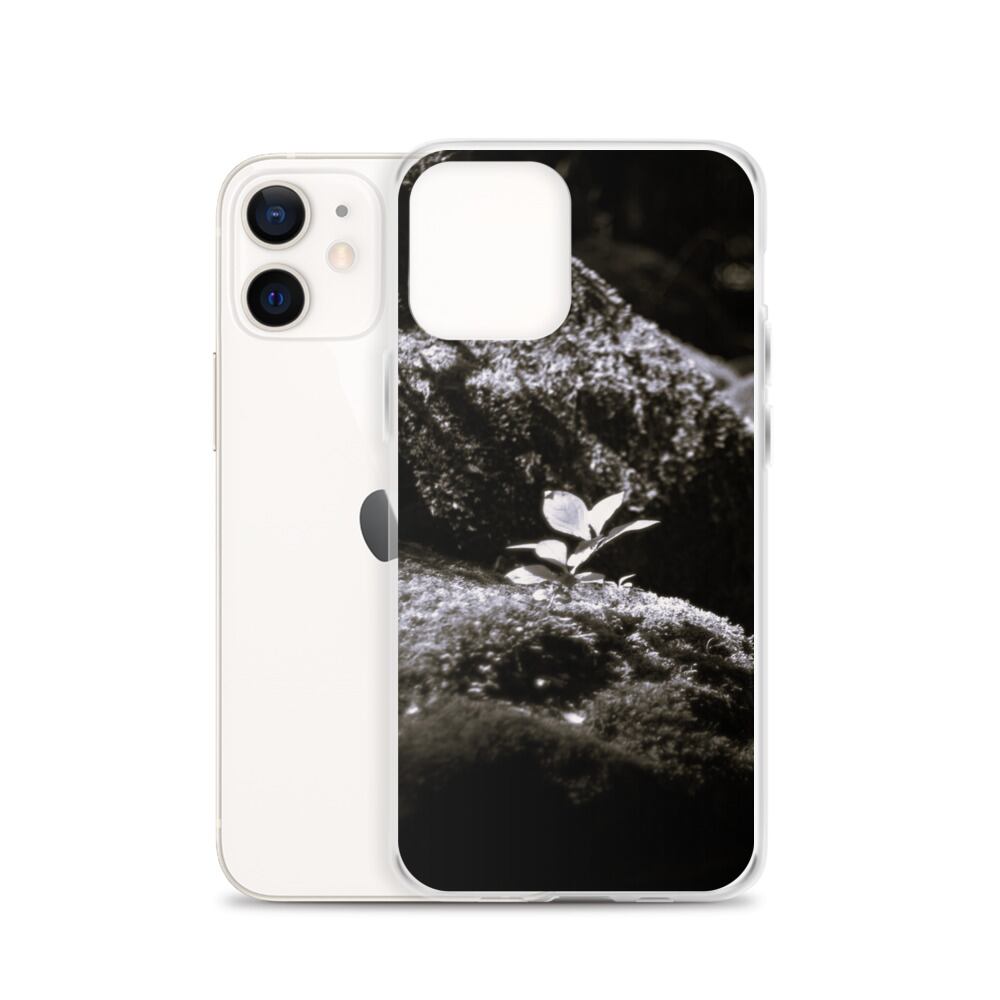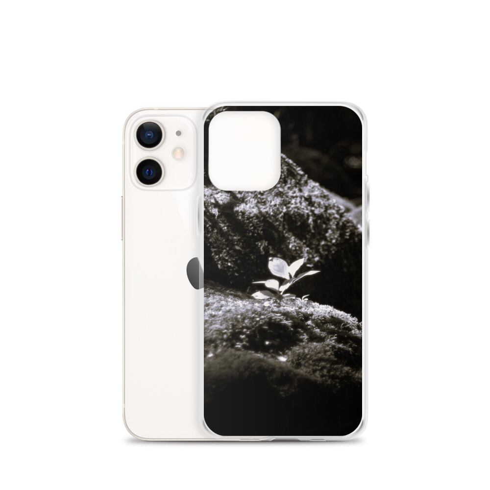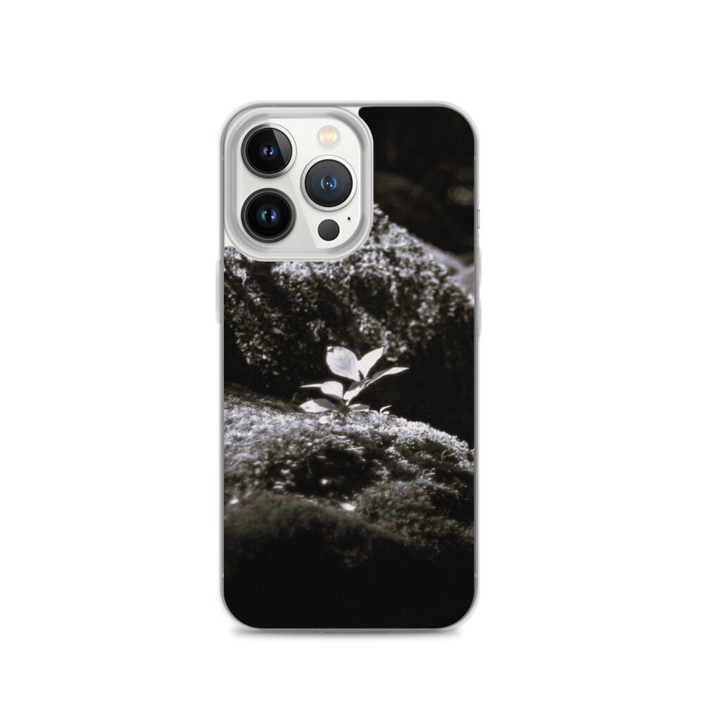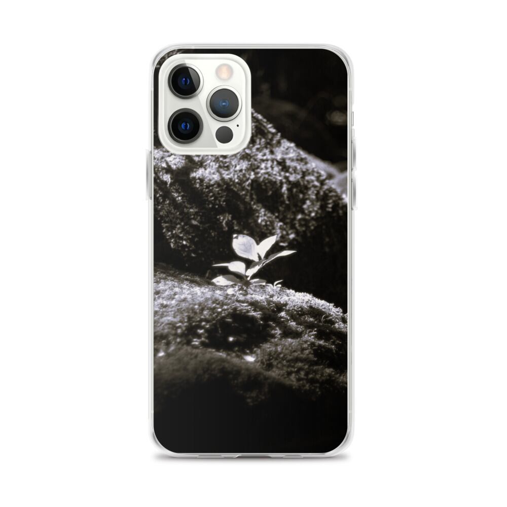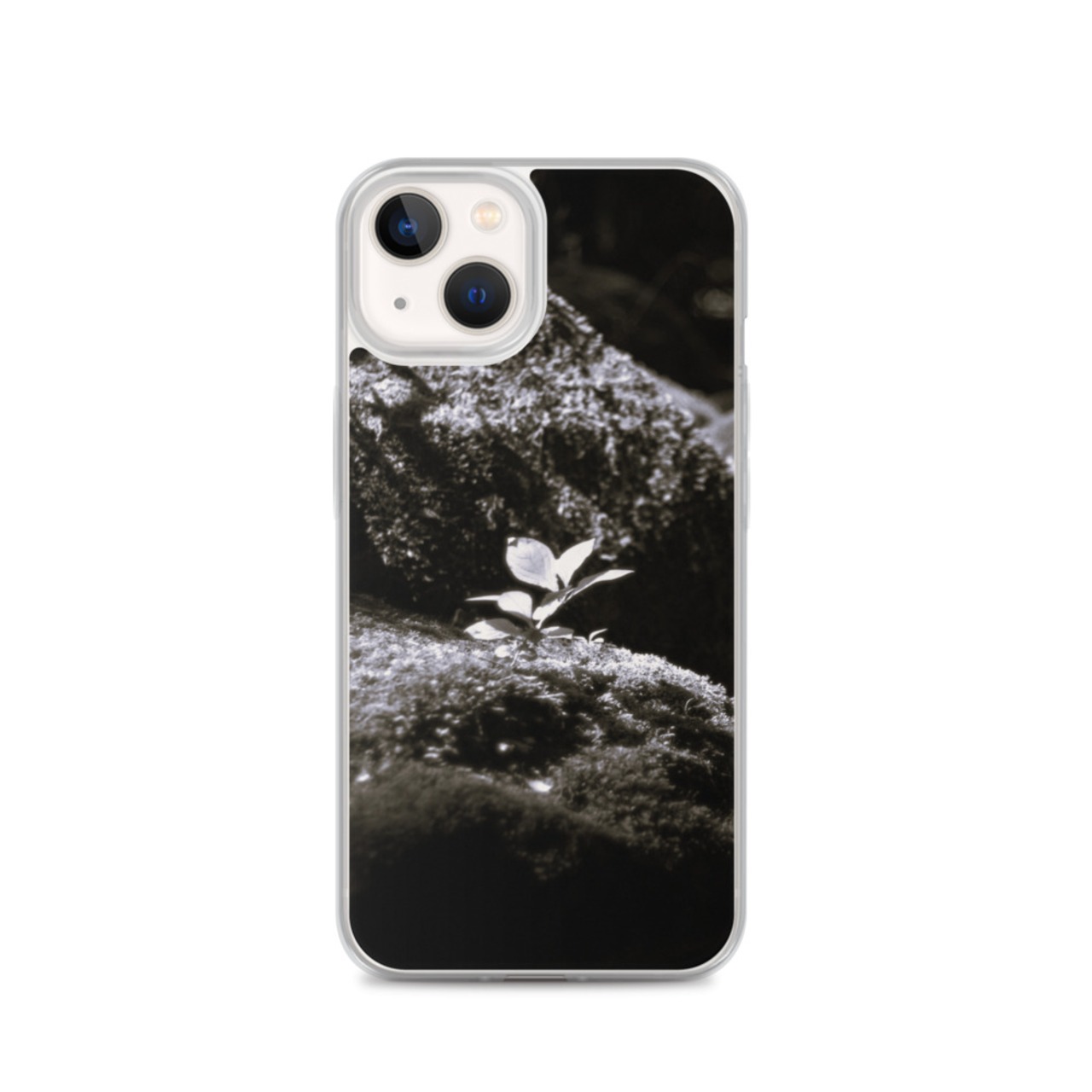 苔むした岩の上の植物をうつした写真(モノクロ)デザインの商品です。