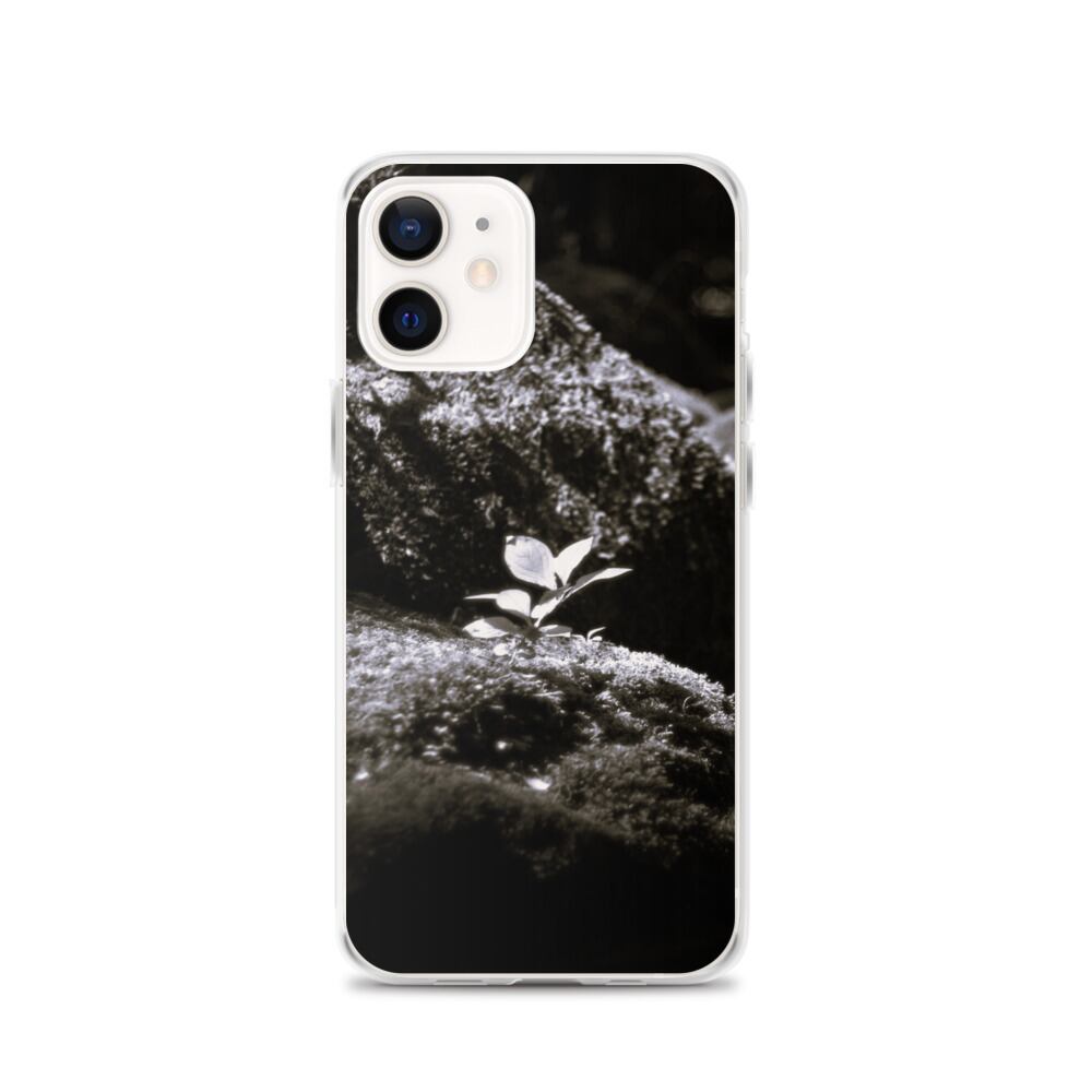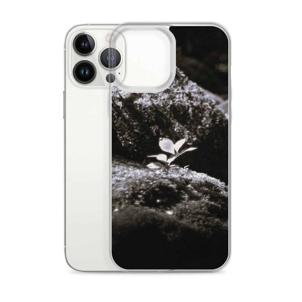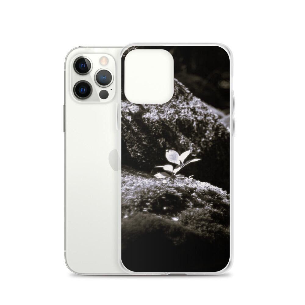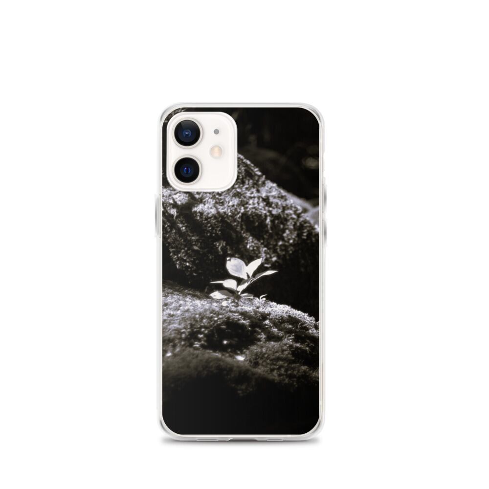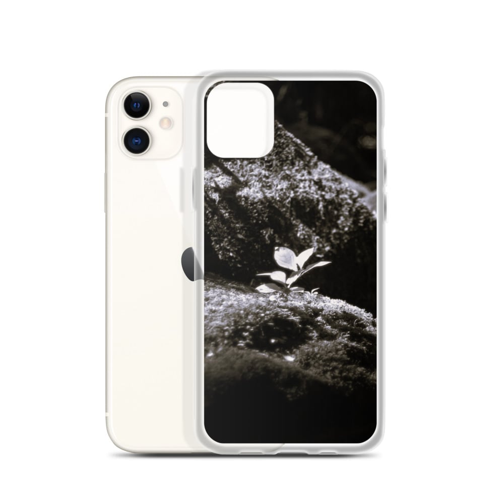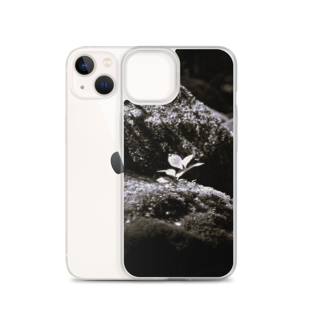苔むした岩の上の植物をうつした写真(モノクロ)デザインの商品です。