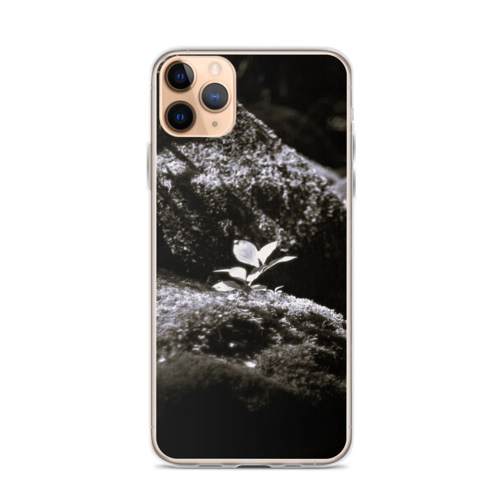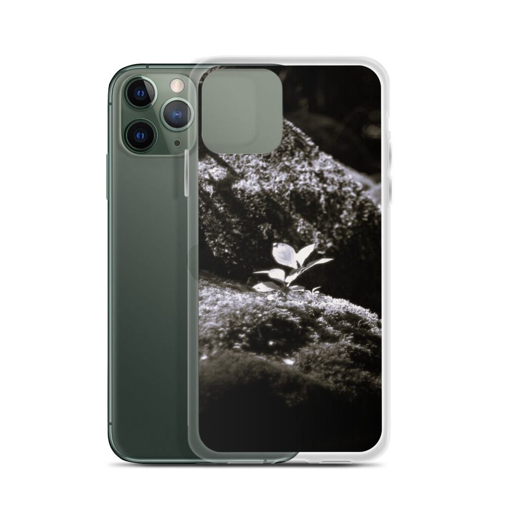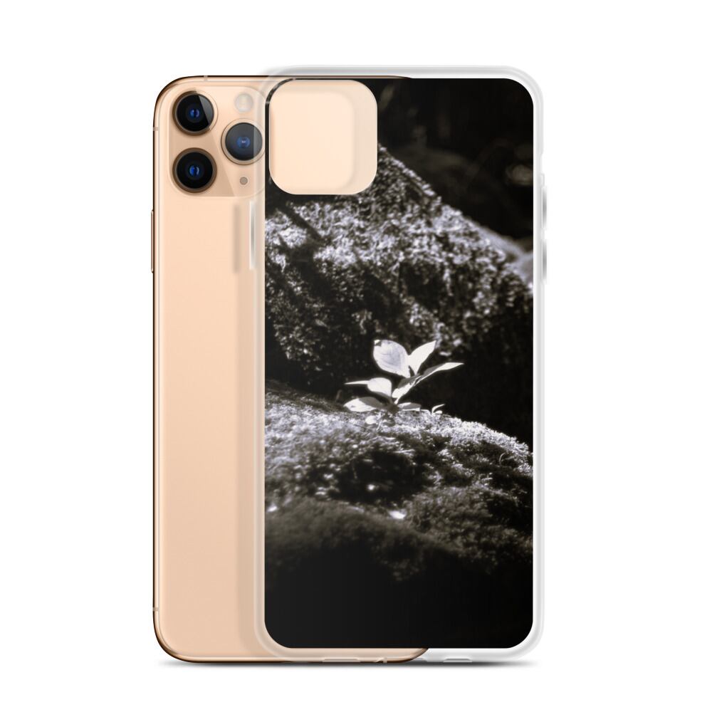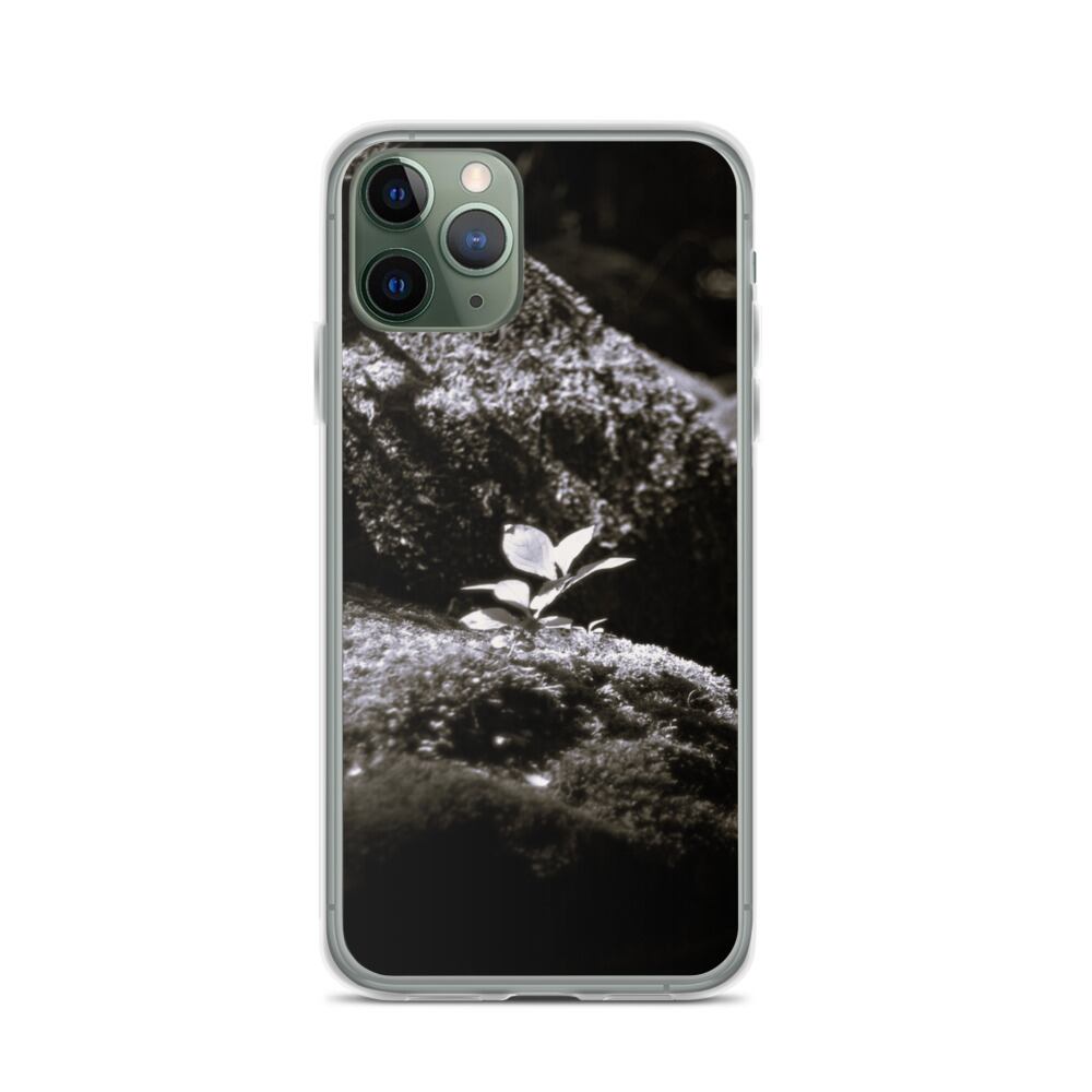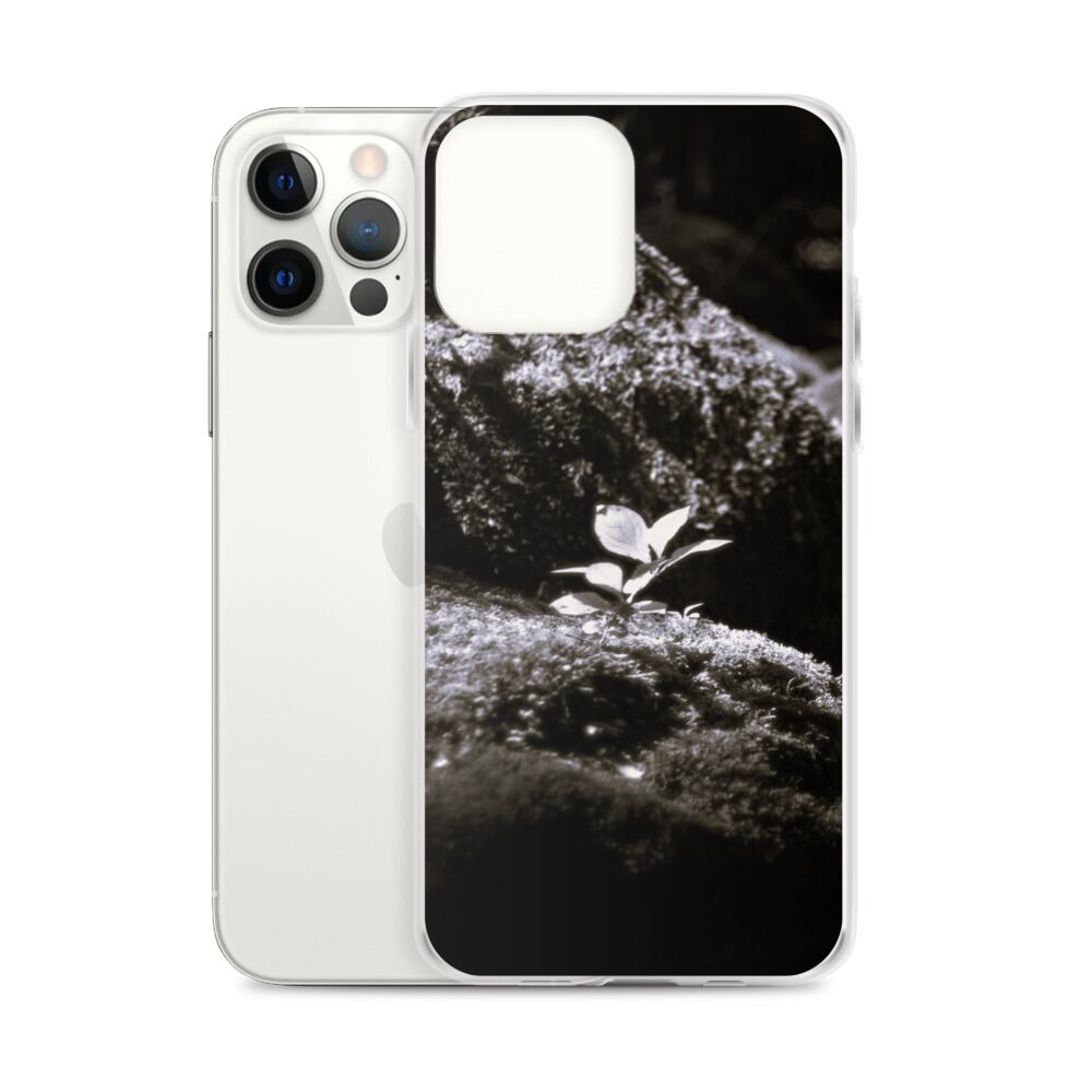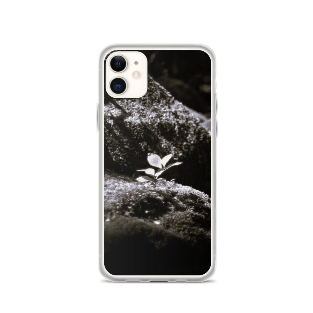 苔むした岩の上の植物をうつした写真(モノクロ)デザインの商品です。