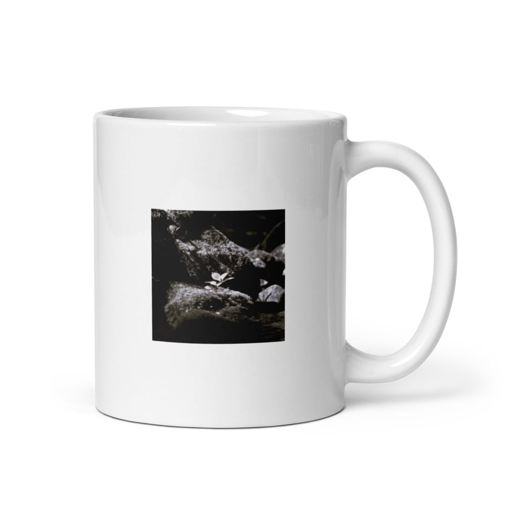 岩の上の植物 モノクロ マグカップ(白)