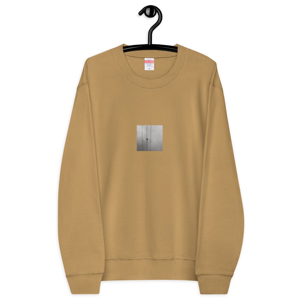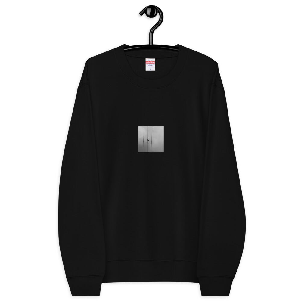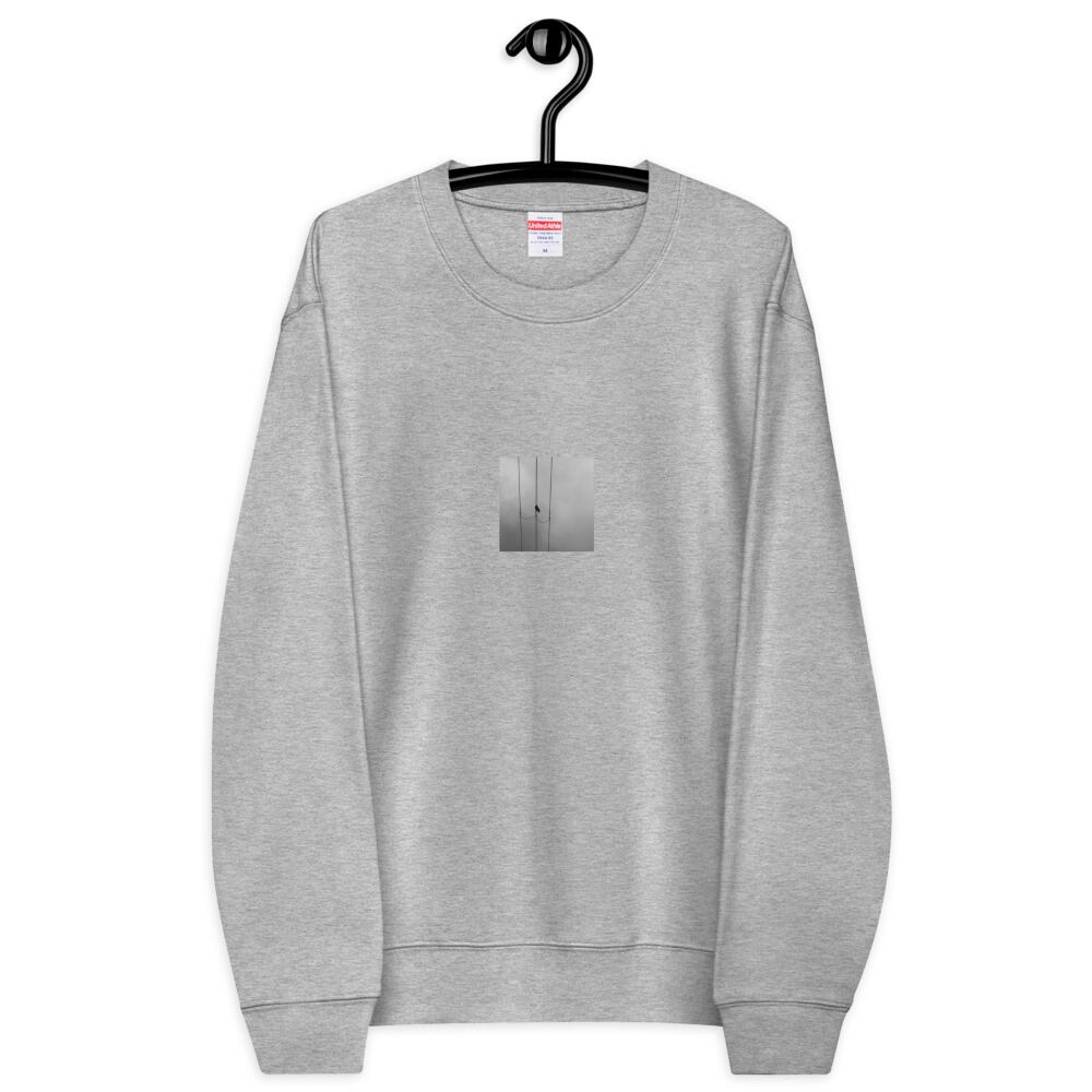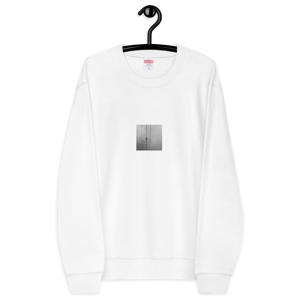 カラスと電線 モノクロ ユニセックス クルーネック 裏毛スウェット