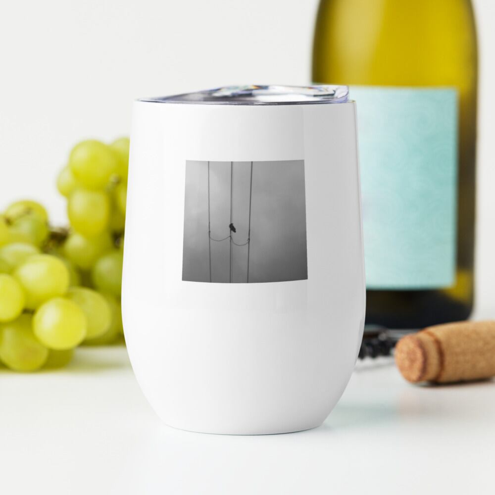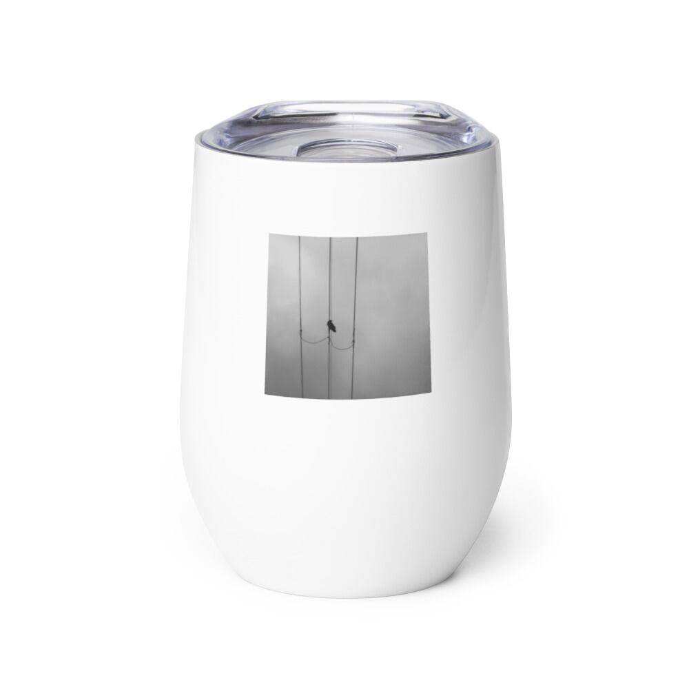 カラスと電線 モノクロ ワインタンブラー