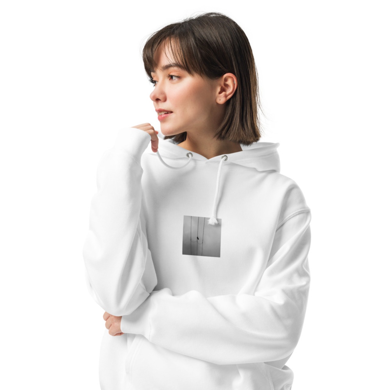カラスと電線 モノクロ ユニセックス 裏毛 プルオーバー パーカー