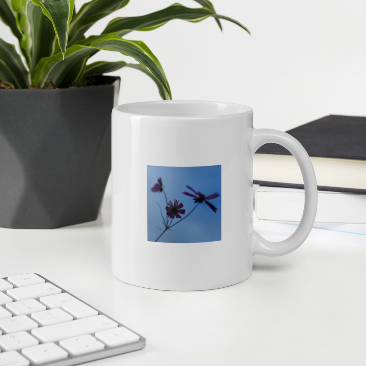 朝のコーヒーからお休み前のティータイムまで、日常に彩りを添える標準サイズのマグカップです。頑丈なセラミック製で、鮮やかな光沢仕上げが写真の美しさを引き立てます。