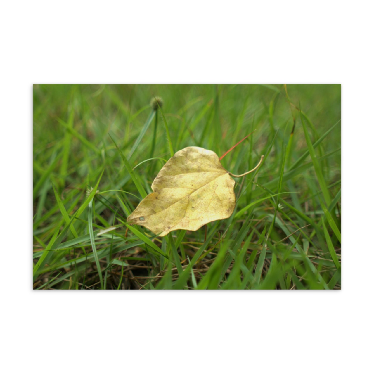 芝の上の黄色い落葉をうつした写真デザインの商品です。