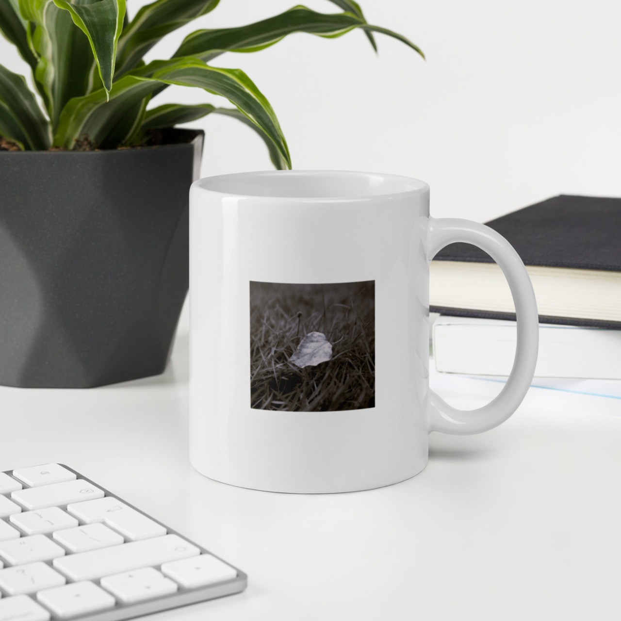 黄色い落葉(モノクロ) マグカップ(白)