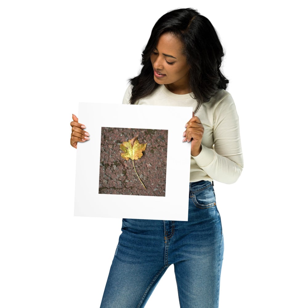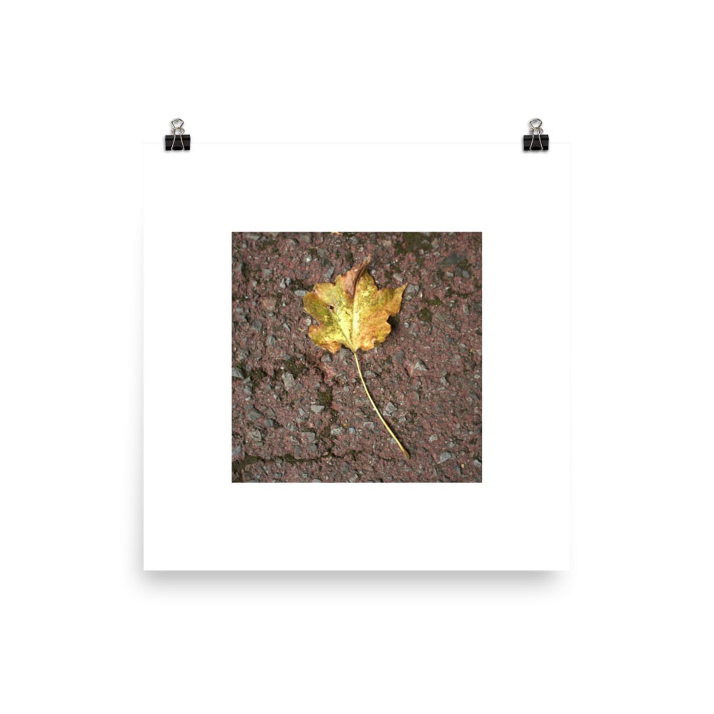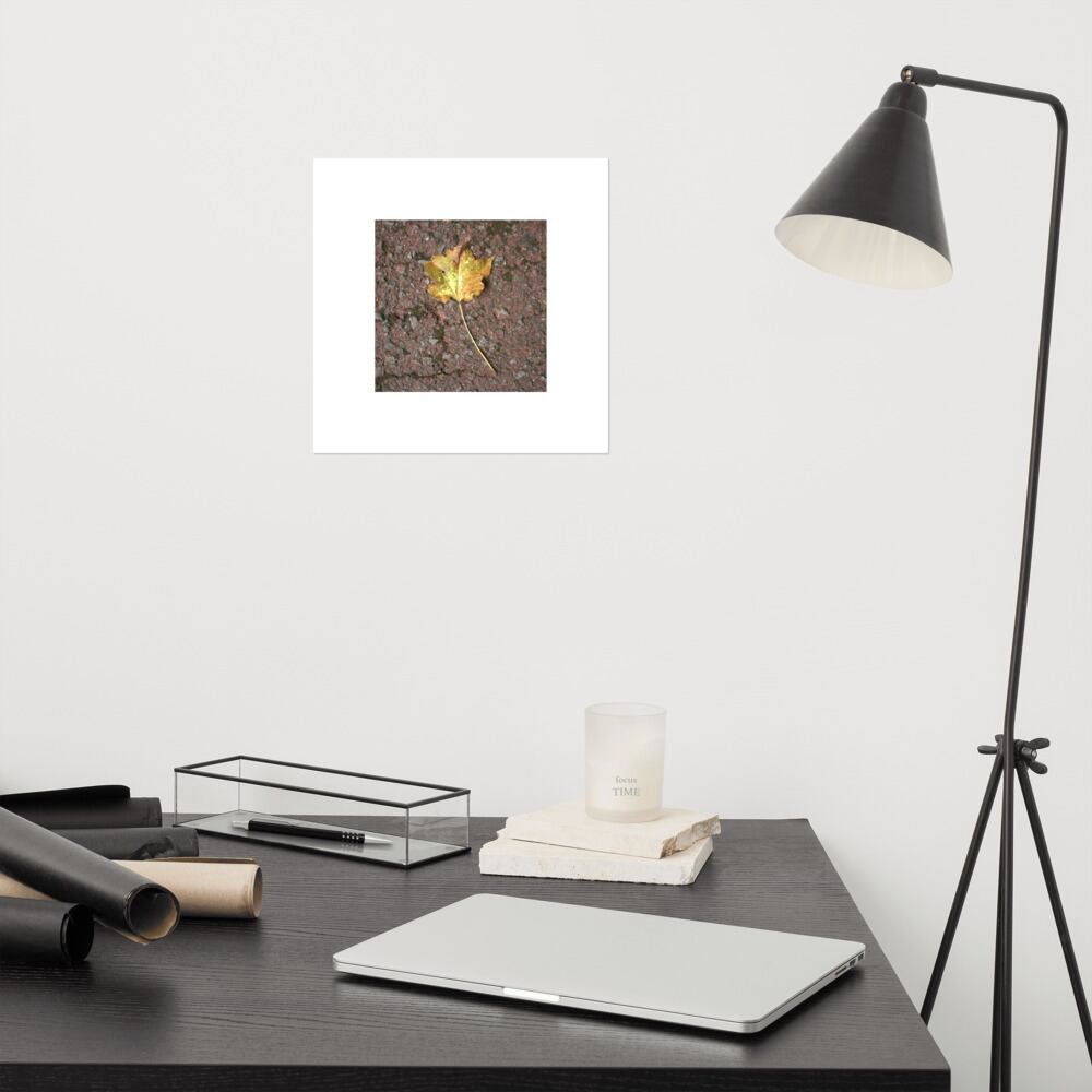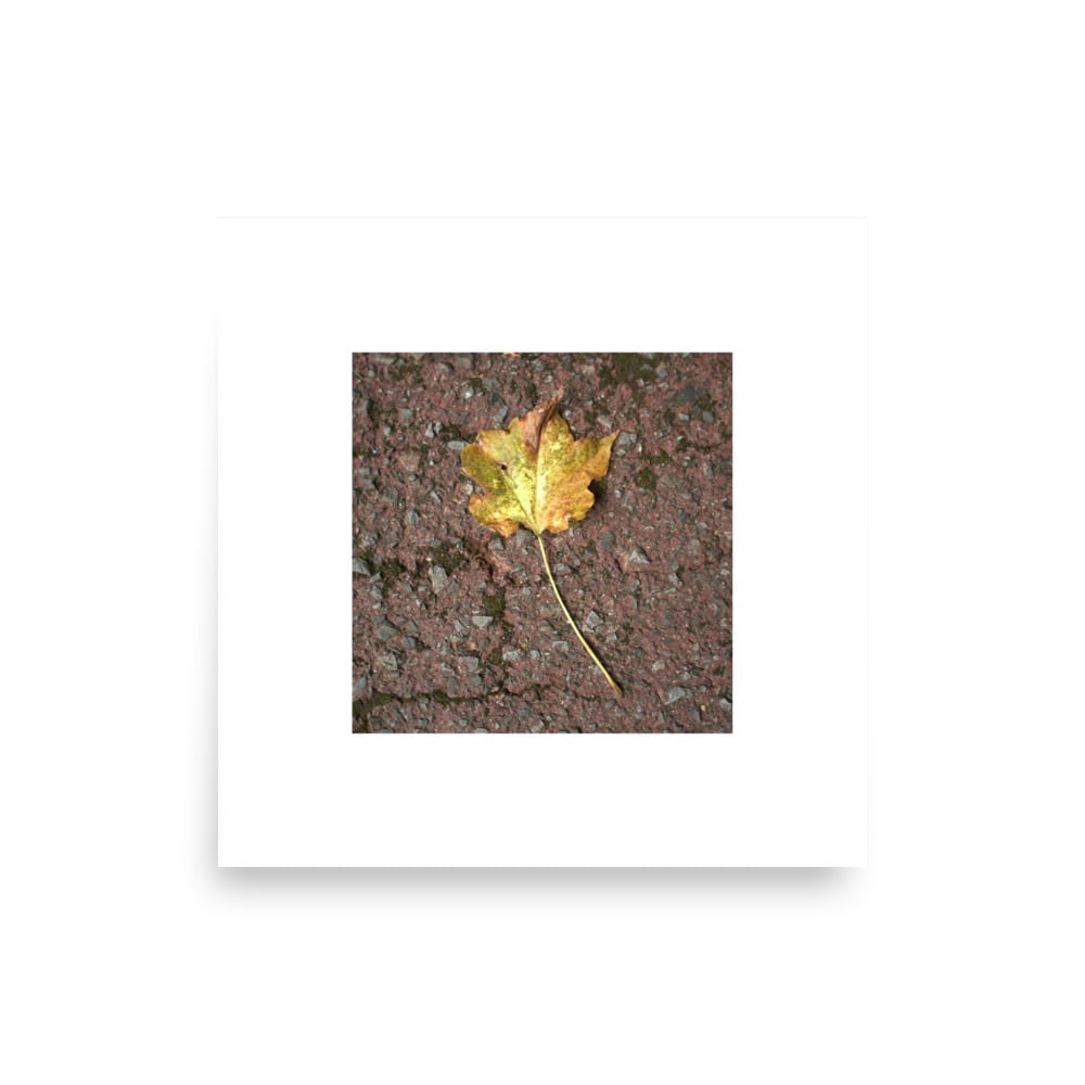 道路に落ちた一枚のカエデの葉を写した写真デザインの商品です。