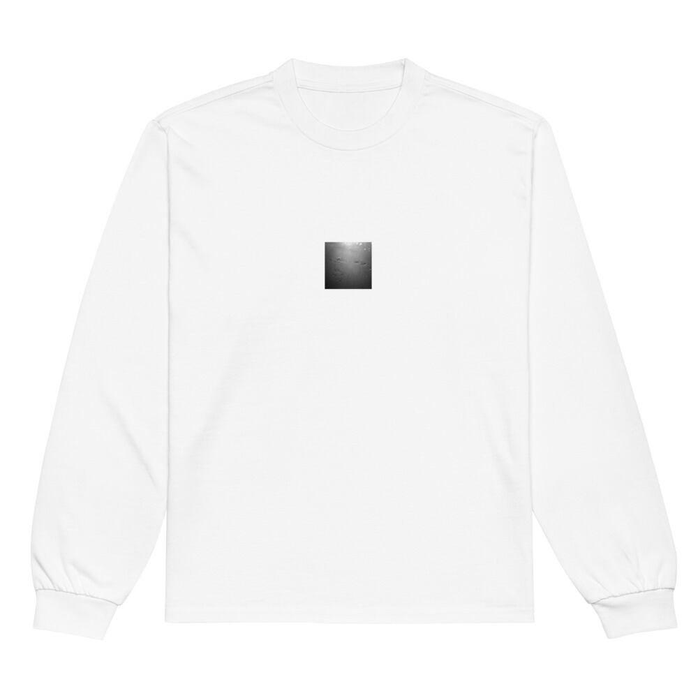 Beach Footprints (B&W) - Premium Heavyweight Long Sleeve Shirt | 足跡 浜辺 モノクロ プレミアムヘビーウェイト長袖シャツ