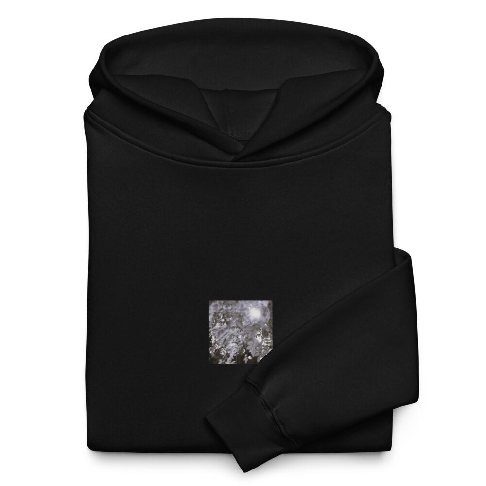 seiartinc, original photography, fine art, wearart, oversized hoodie, Sunlight Filtering Through Trees, 木漏れ日, tree, sunlight, nature, natural, monochrome, black and white, b&w, モノクロ, 白黒, photo, art, design, unisex hoodie, apparel, clothing, fashion, street wear, オーバーサイズパーカー, フーディー, アパレル, 自然, 風景, 写真家, オリジナルデザイン, AS Colour 5161