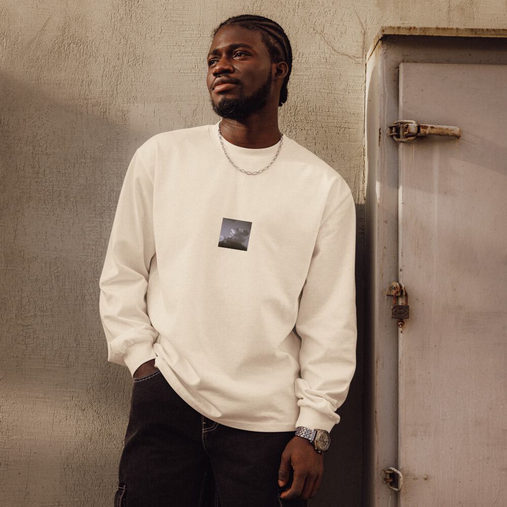 Cumulonimbus Cloud (B&W) - Premium Heavyweight Long Sleeve Shirt | 雲 空 モノクロ プレミアムヘビーウェイト長袖シャツ