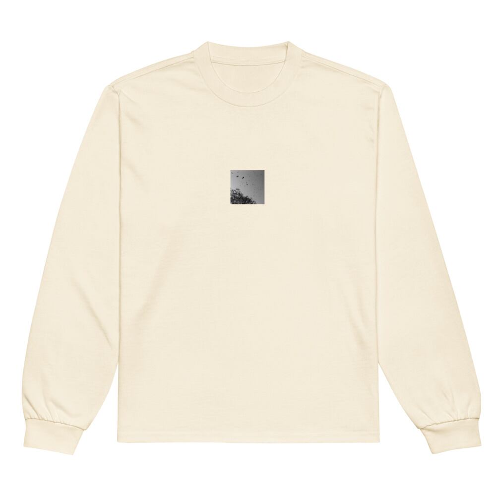 Leaves Dancing in Wind (B&W) - Premium Heavyweight Long Sleeve Shirt | 風で舞う落葉 モノクロ プレミアムヘビーウェイト長袖シャツ