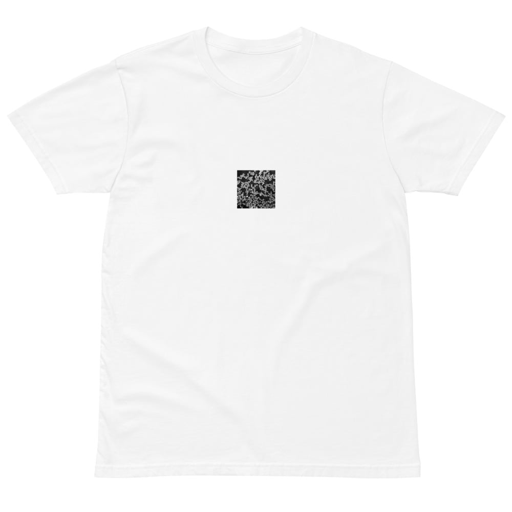 seiartinc, original photography, fine art, wearart, premium t-shirt, Cherry Blossom Petals in Puddle, 水たまりの桜の花びら, cherry blossom, petals, flower, water, nature, natural, botanical, monochrome, black and white, b&w, モノクロ, 白黒, photo, art, design, unisex t-shirt, short sleeve, apparel, clothing, fashion, street wear, プレミアム, アパレル, ファッション, 写真家, オリジナルデザイン, AS Colour 5001
