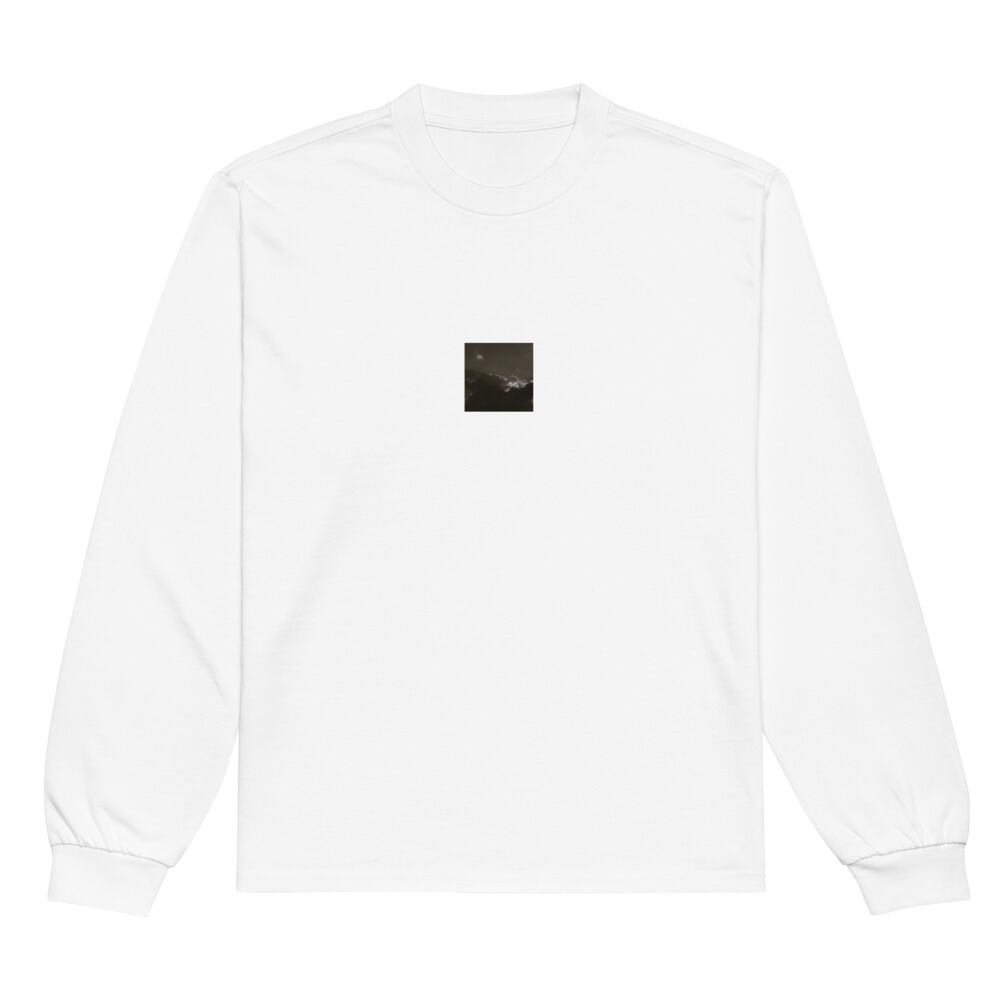 Light from the Clouds (B&W) - Premium Heavyweight Long Sleeve Shirt | 雲からの光 モノクロ プレミアムヘビーウェイト長袖シャツ