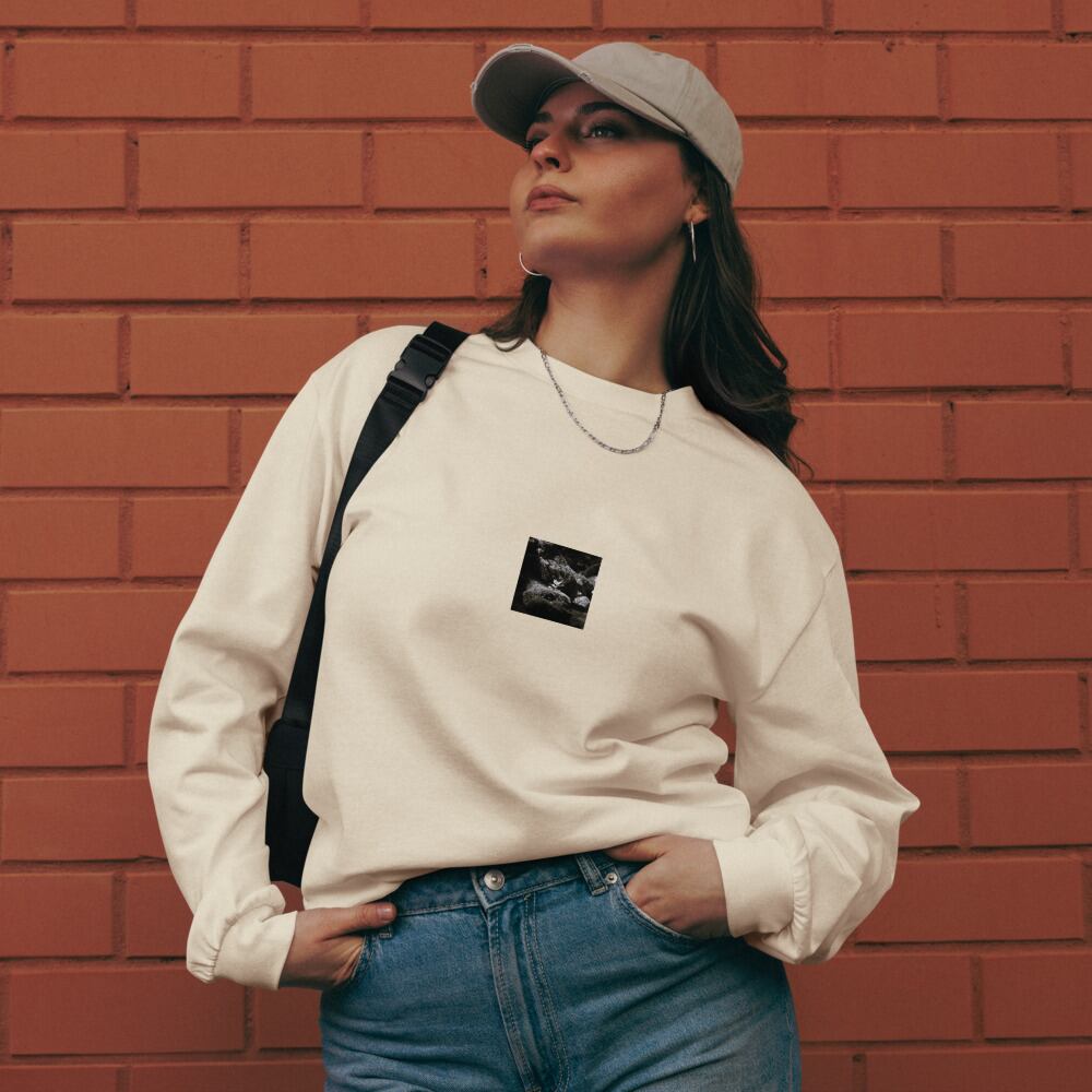 Plant on a Rock (B&W) - Premium Heavyweight Long Sleeve Shirt | 岩の上の植物 モノクロ プレミアムヘビーウェイト長袖シャツ