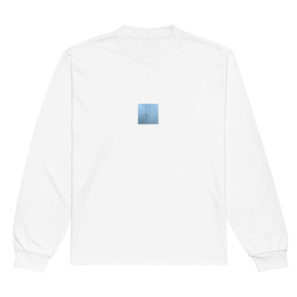 Crow and Power Lines - Premium Heavyweight Long Sleeve Shirt | カラスと電線 プレミアムヘビーウェイト長袖シャツ