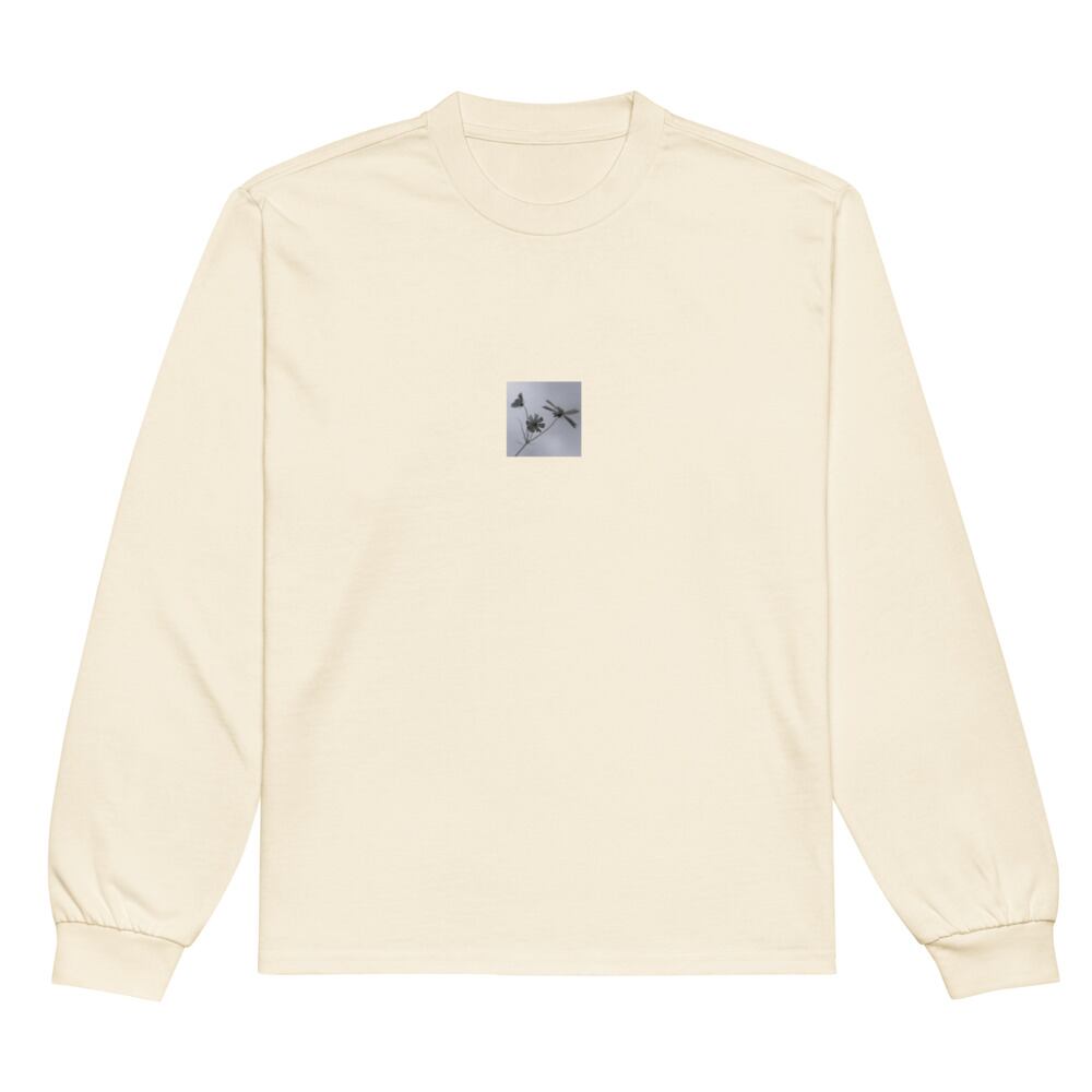 Three Cosmos Flowers (B&W) - Premium Heavyweight Long Sleeve Shirt | 3輪のコスモス モノクロ プレミアムヘビーウェイト長袖シャツ
