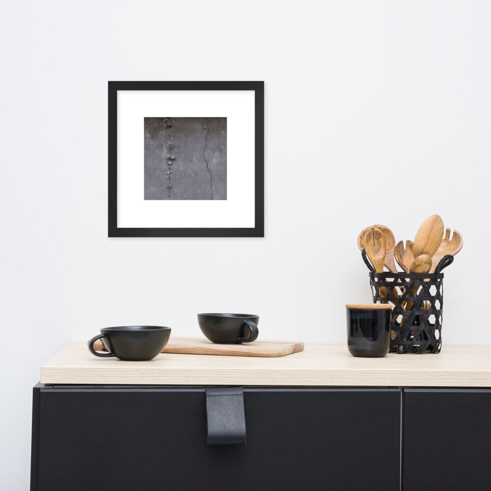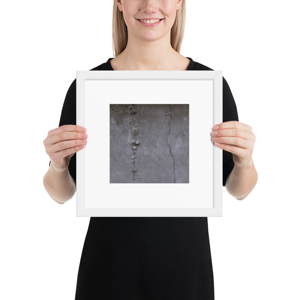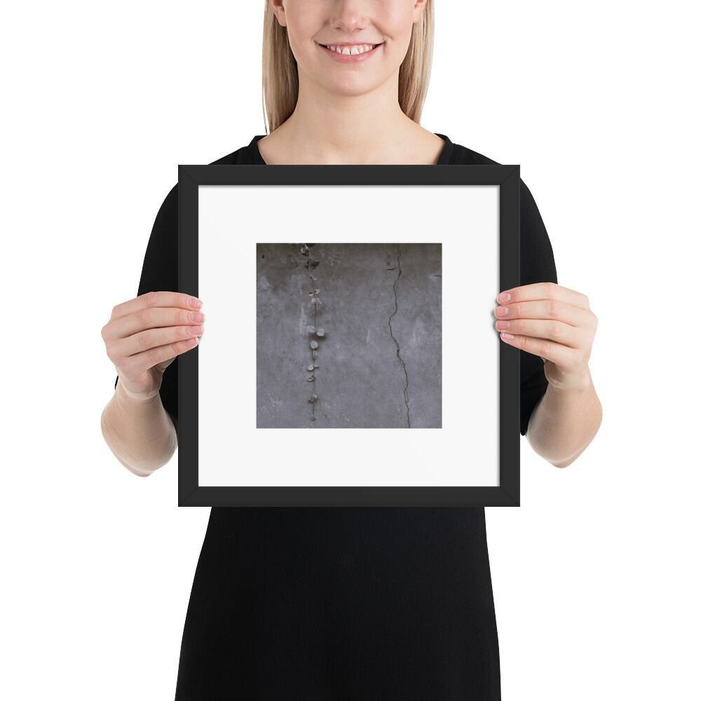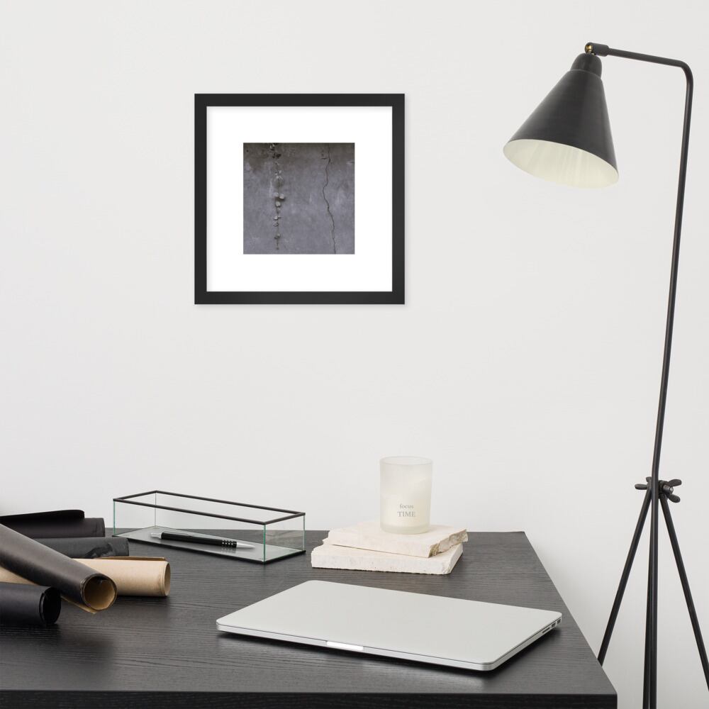 Crack and Leaf (B&W) - Framed Matte Paper Poster (in) | 葉 ひび割れ モノクロ フレーム付き 強化マットポスター(インチ)