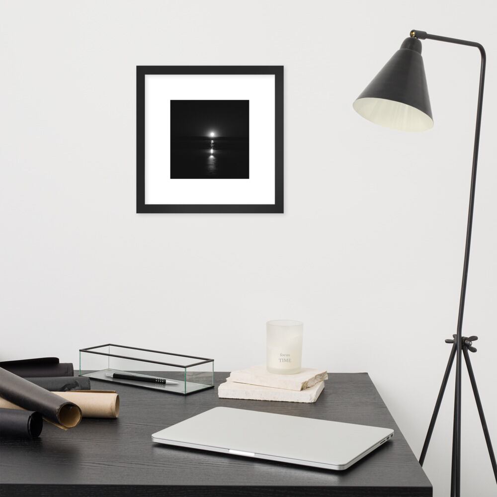 Ocean Sunbeams (B&W) - Framed Matte Paper Poster (in) | 太陽 海 日差し モノクロ フレーム付き 強化マットポスター(インチ)