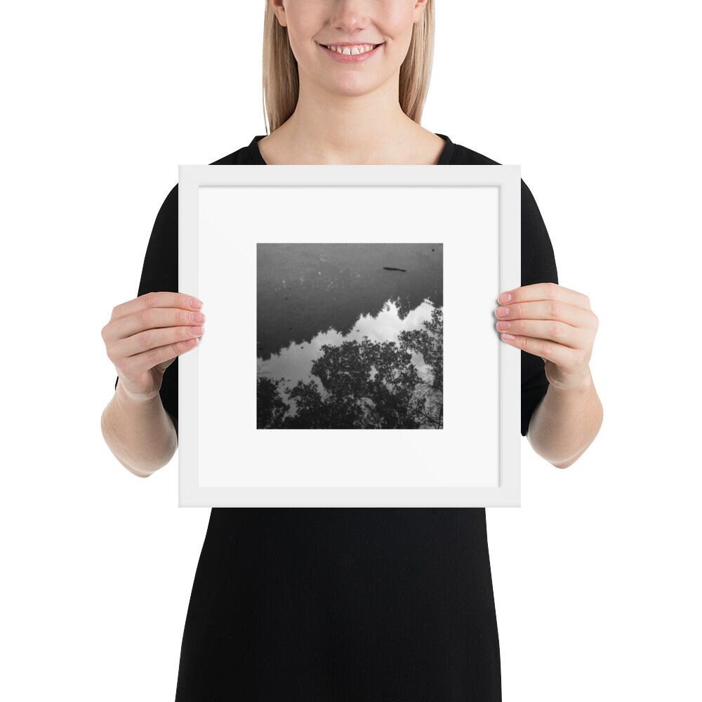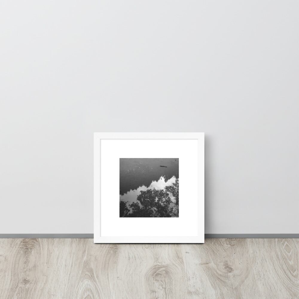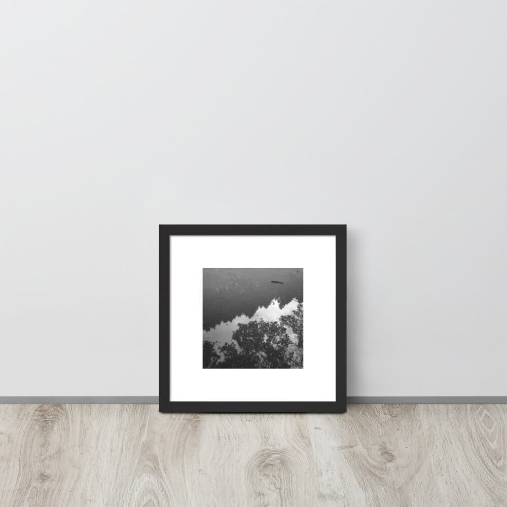 Pond Fish (B&W) - Framed Matte Paper Poster (in) | 水面 池 魚 モノクロ フレーム付き 強化マットポスター(インチ)