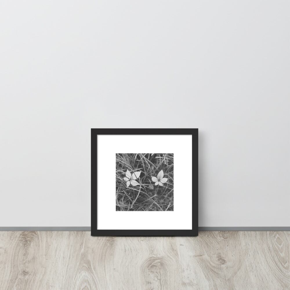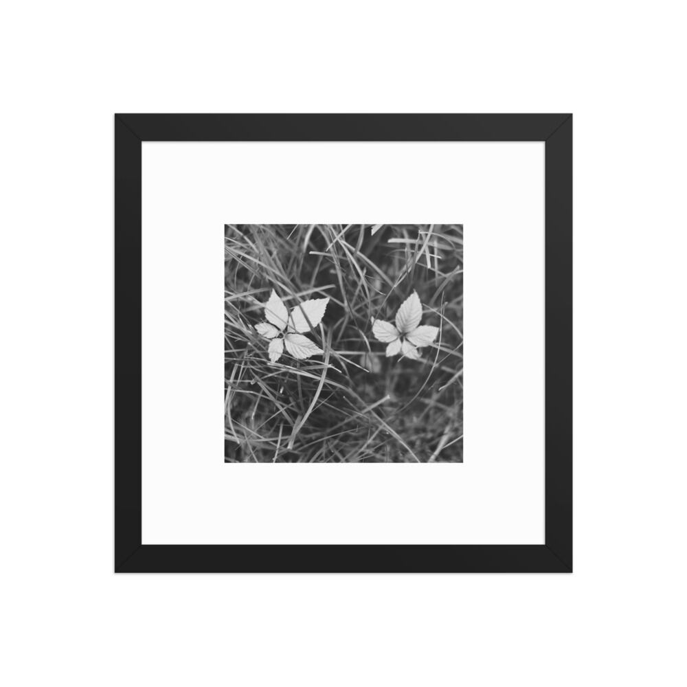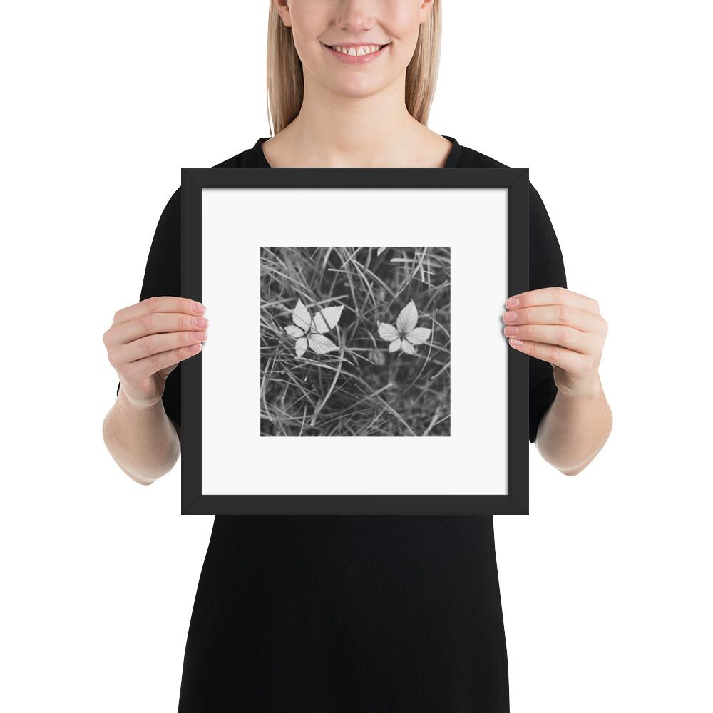 Green Weeds & Leaves (B&W) - Framed Matte Paper Poster (in) | 葉 雑草 モノクロ フレーム付き 強化マットポスター(インチ)