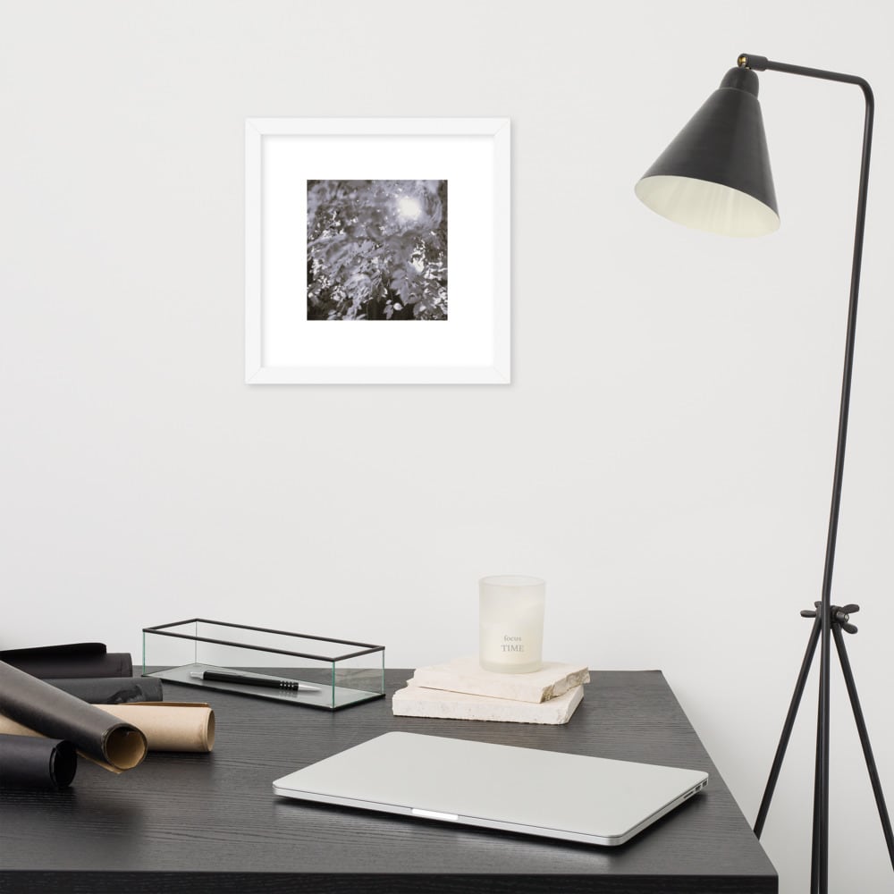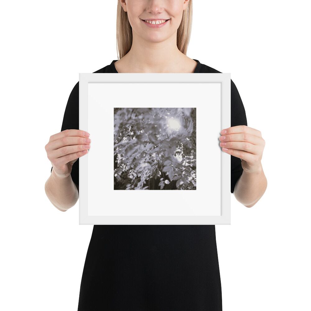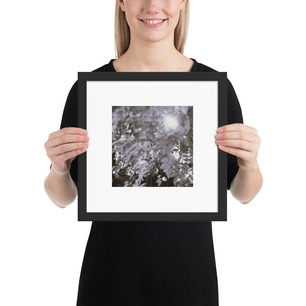 Sunlight Filtering Through Trees (B&W) - Framed Matte Paper Poster (in) | 木漏れ日 モノクロ フレーム付き 強化マットポスター(インチ)