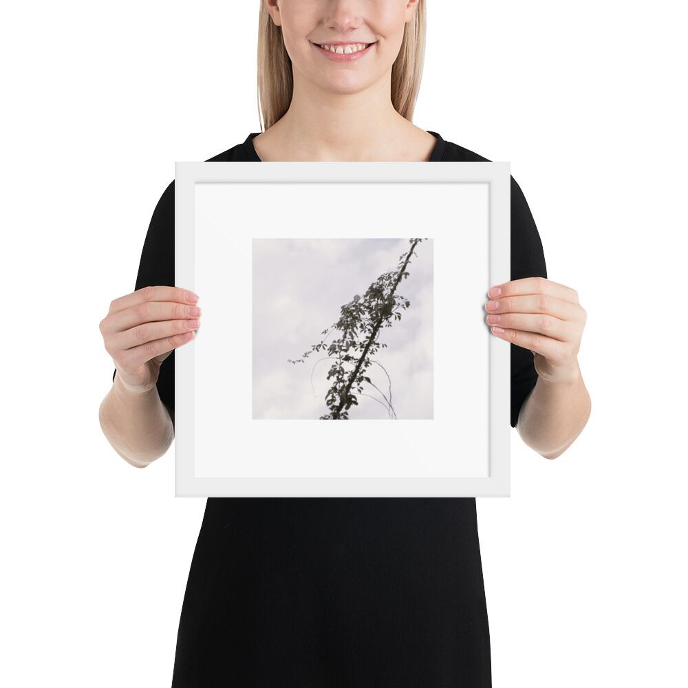 Vines Entangled on a Utility Pole (B&W) - Framed Matte Paper Poster (in) | ツル 電線 モノクロ フレーム付き 強化マットポスター(インチ)