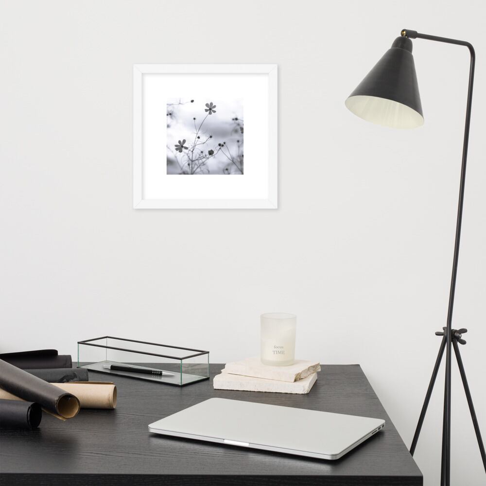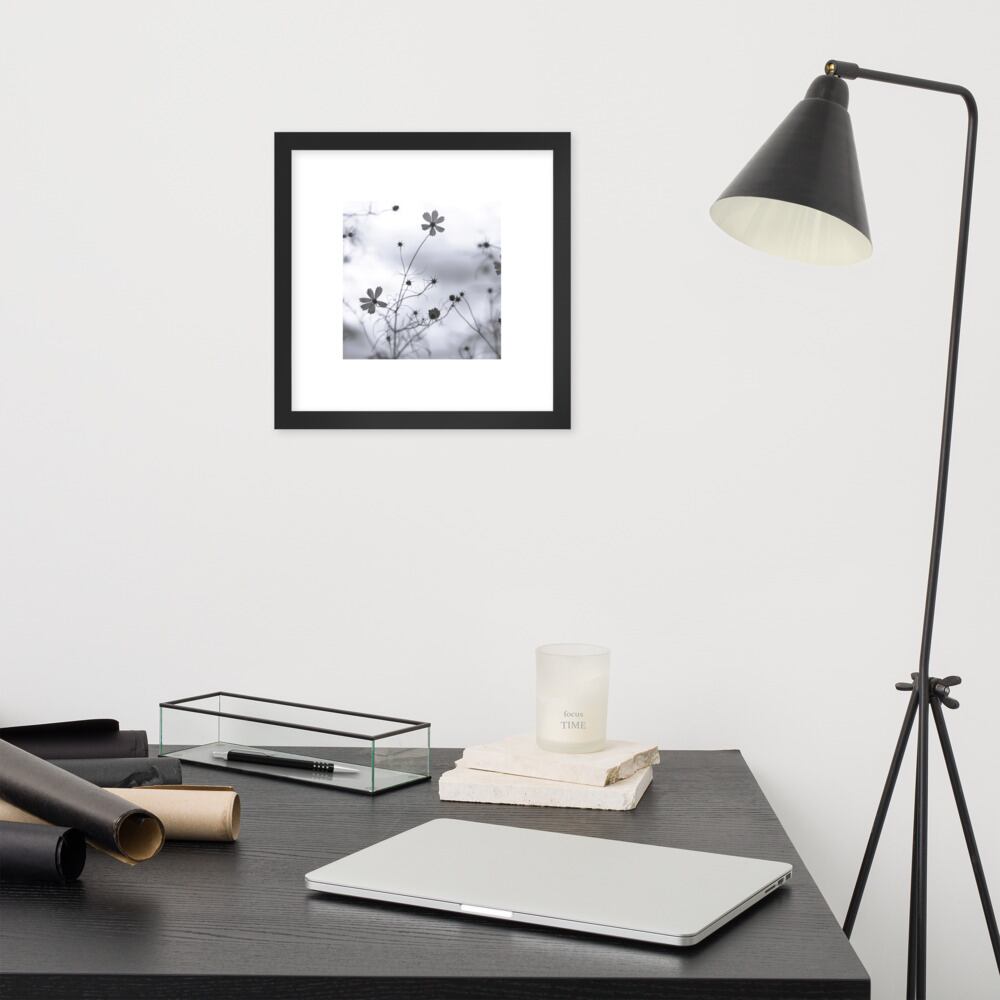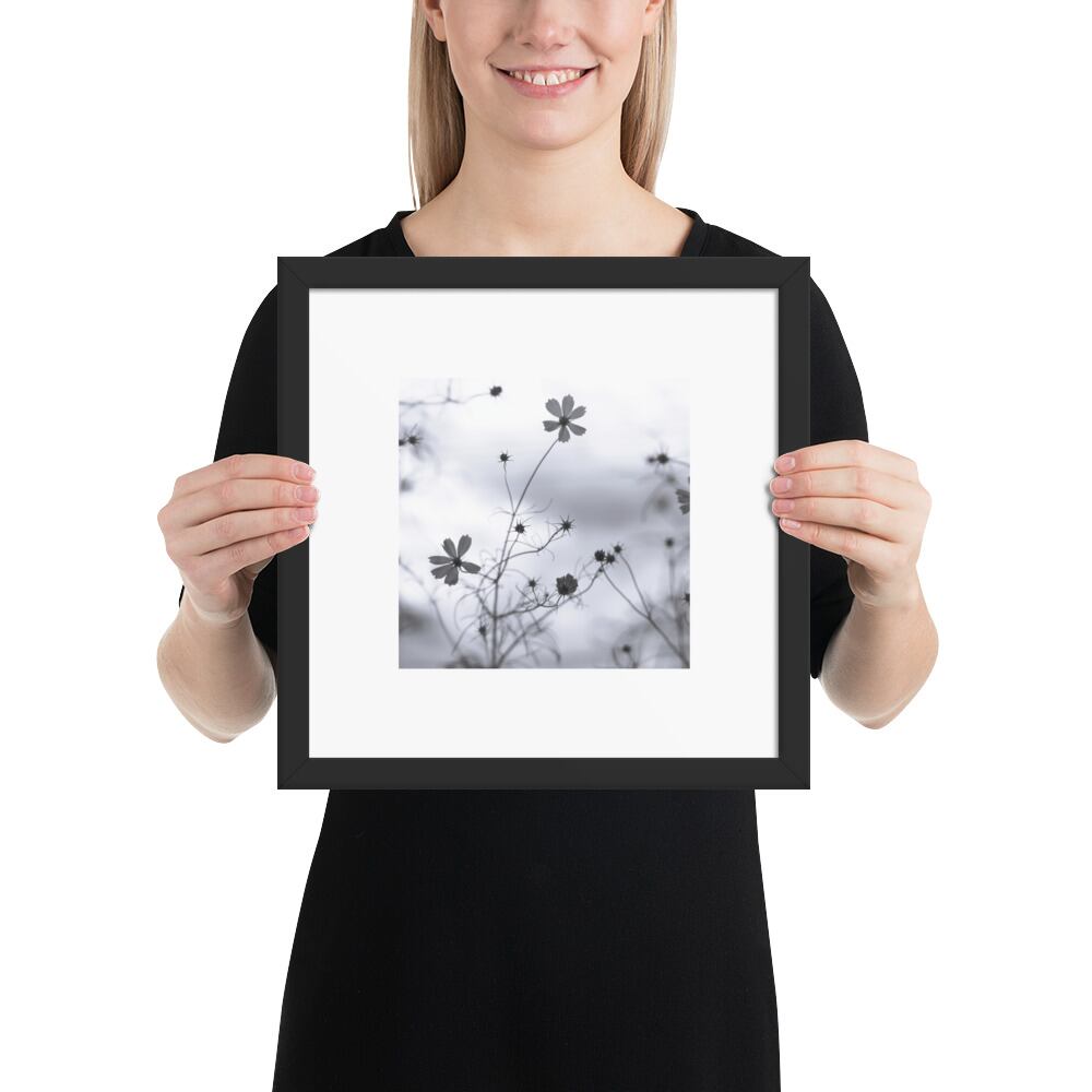 Cosmos Flower (B&W) - Framed Matte Paper Poster (in) | コスモス 秋桜 モノクロ フレーム付き 強化マットポスター(インチ)