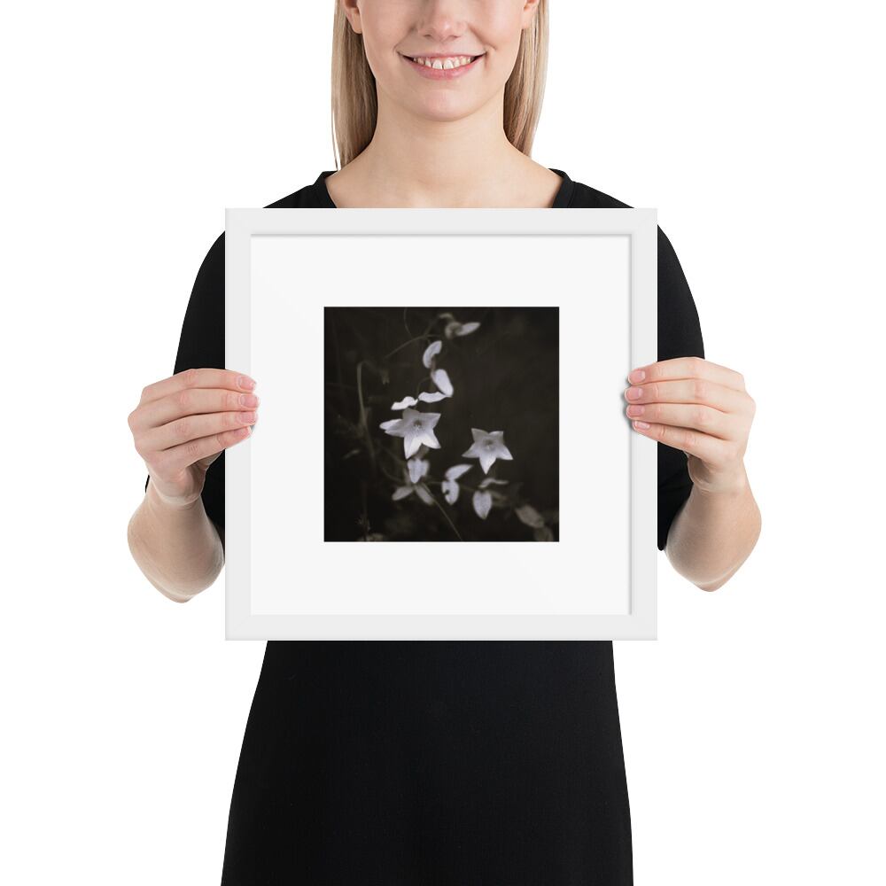 Balloon Flower (B&W) - Framed Matte Paper Poster (in) | キキョウ 花 モノクロ フレーム付き 強化マットポスター(インチ)