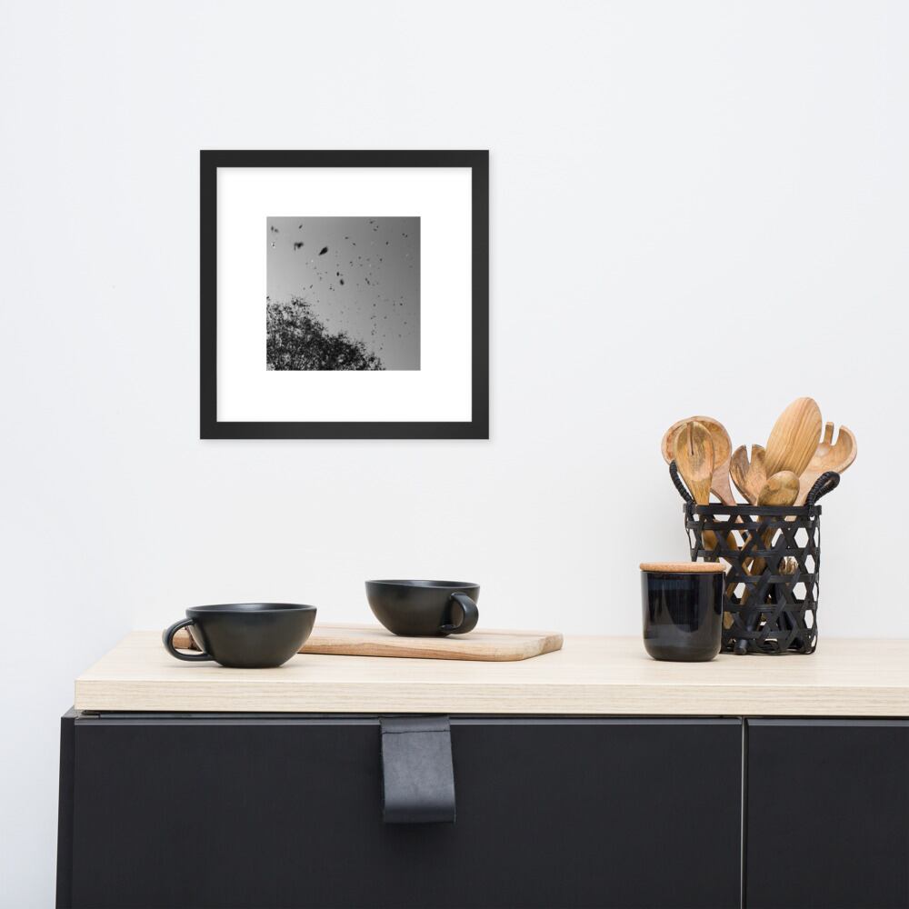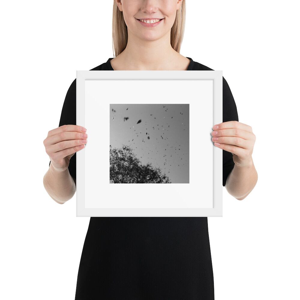 Leaves Dancing in Wind (B&W) - Framed Matte Paper Poster (in) | 風で舞う落葉 モノクロ フレーム付き 強化マットポスター(インチ)