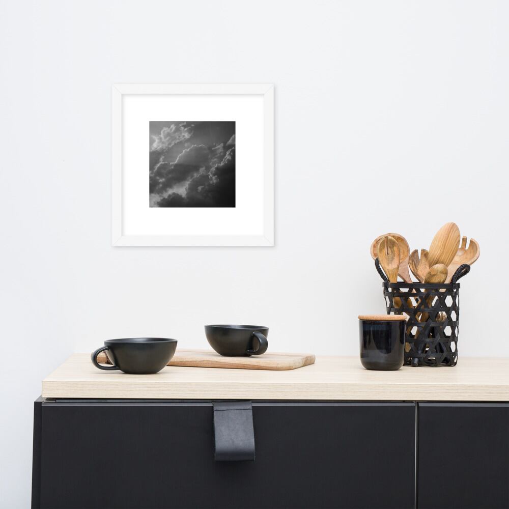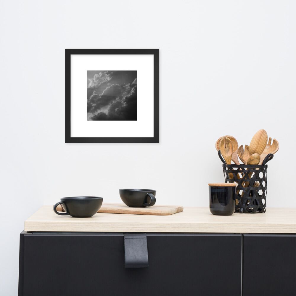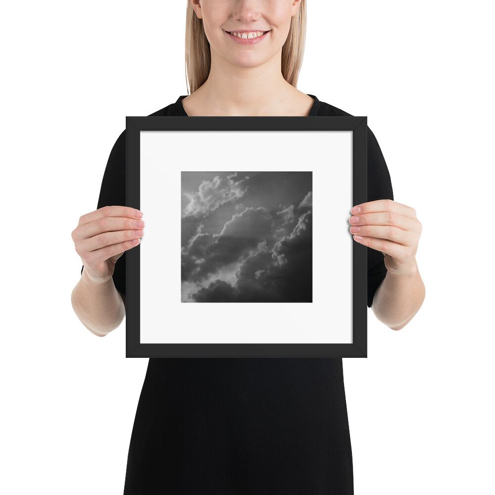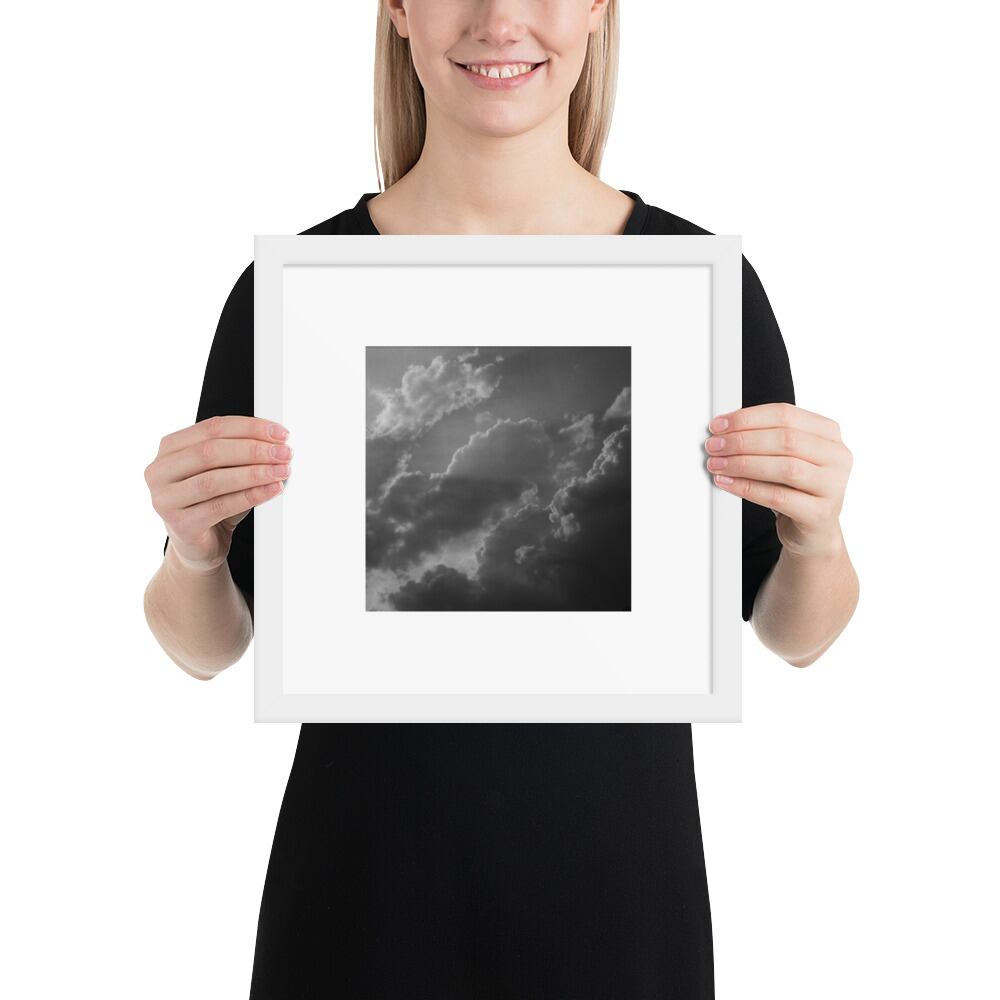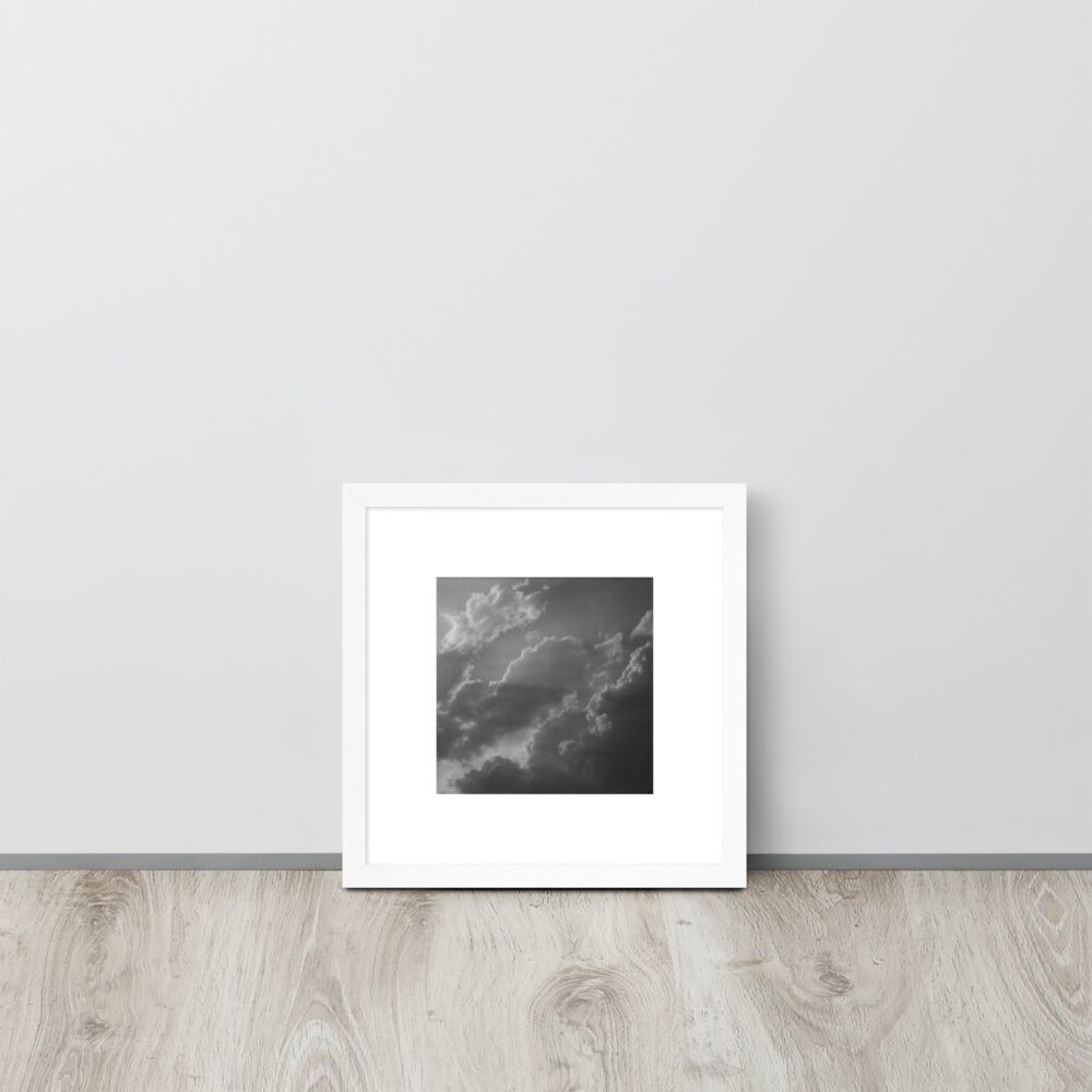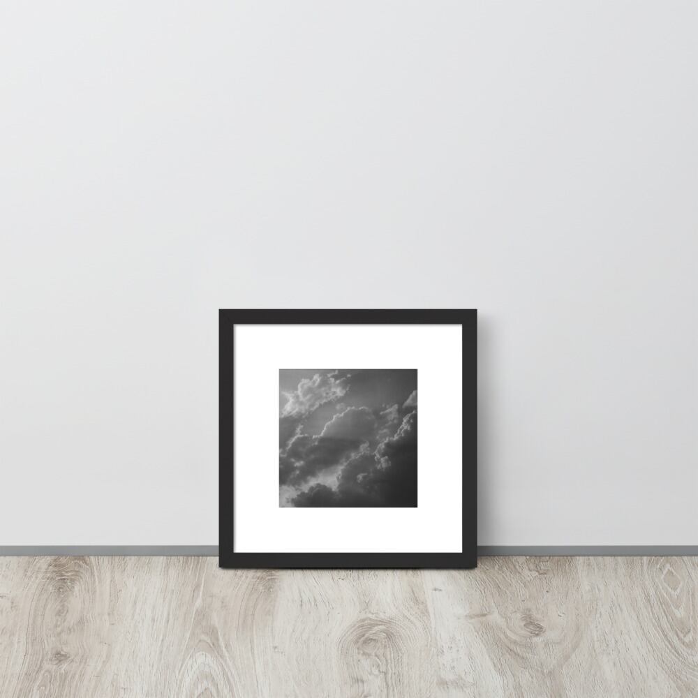 Light Rays through Clouds (B&W) - Framed Matte Paper Poster (in) | 雲から差す光 モノクロ フレーム付き 強化マットポスター(インチ)
